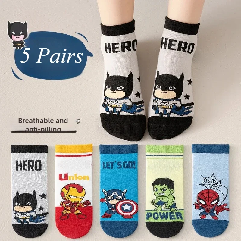 5 Pairs Spiderman Cotton Children’s Socks iron Man Hulk Thor Anime kids Boys Short Socks Cartoon Baby Spring Summer Short Socks