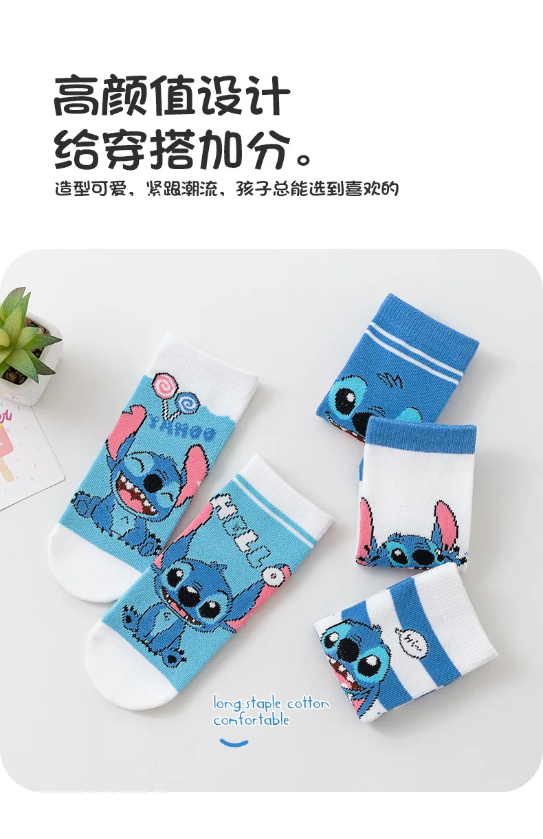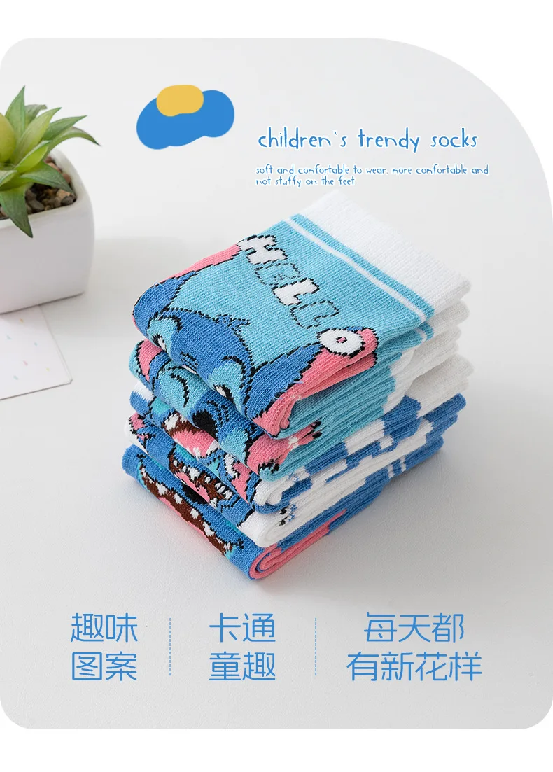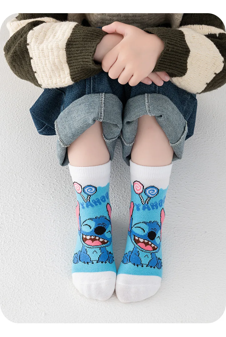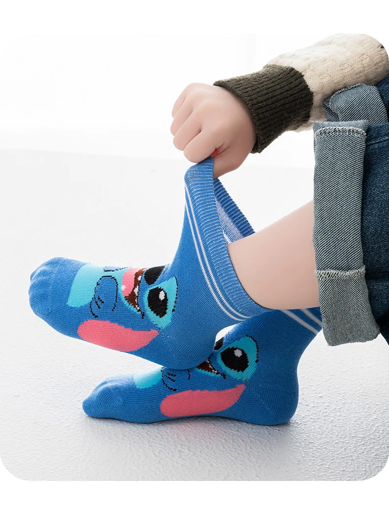 5 Pairs Spring Autumn Cartoon Stitch Children Socks Boy’s Socks Middle Tube sock Cotton Cute Kids Socks Girl Sock Size 1-8 Years