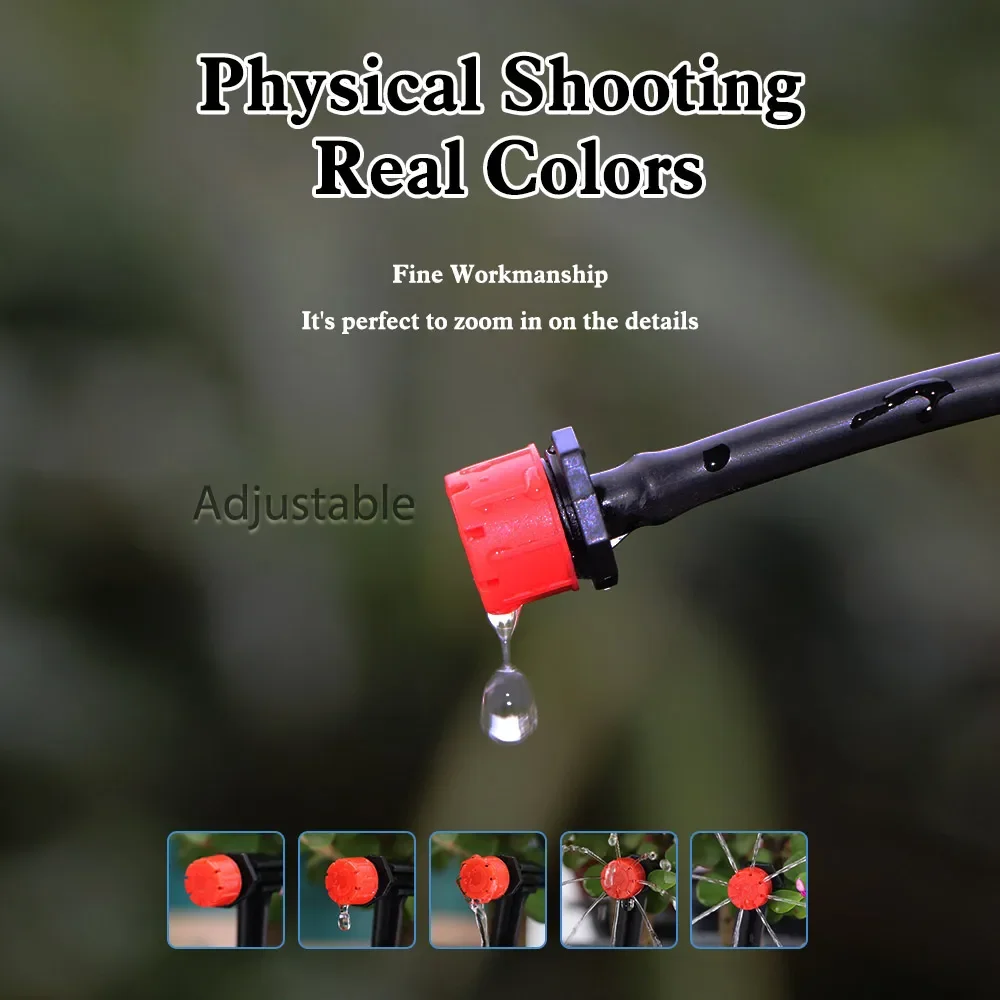 50-500PCS 1/4” Barb Red Adjustable Nozzles Garden Watering Irrigation Sprinkler Washable Emitter 0-80L/H for Yard Greenhouse