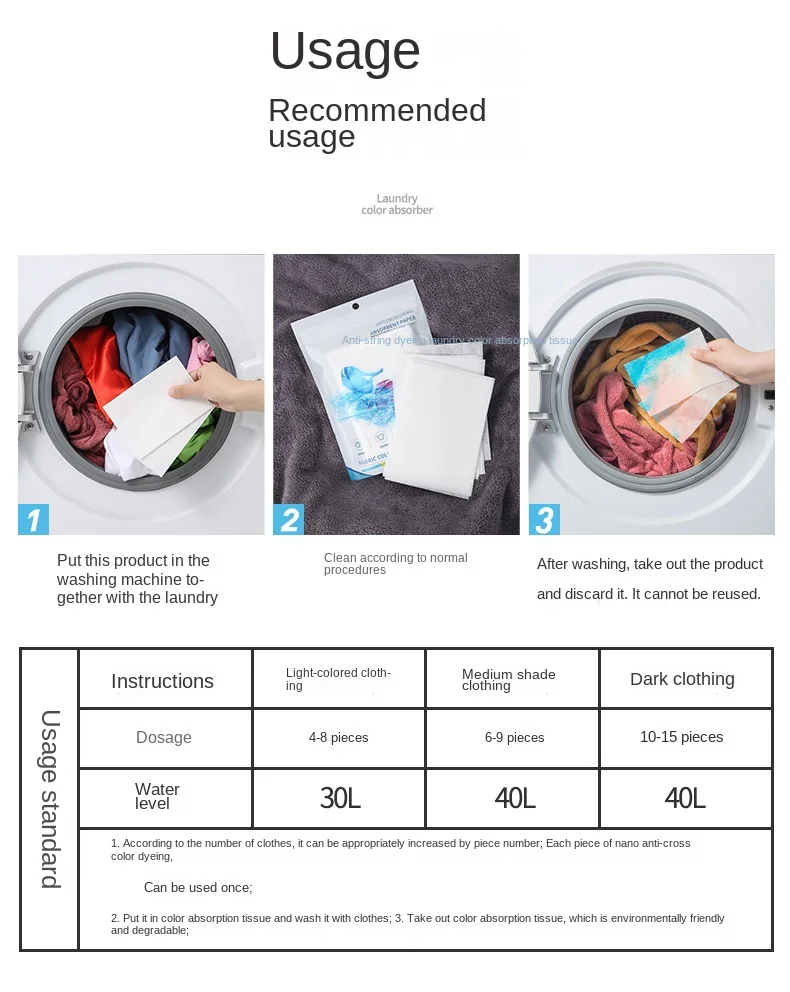 3. The sheets are ideal for using in washing loads containing dark and bright colored items, quickly absorbing any loose dyes released during washing