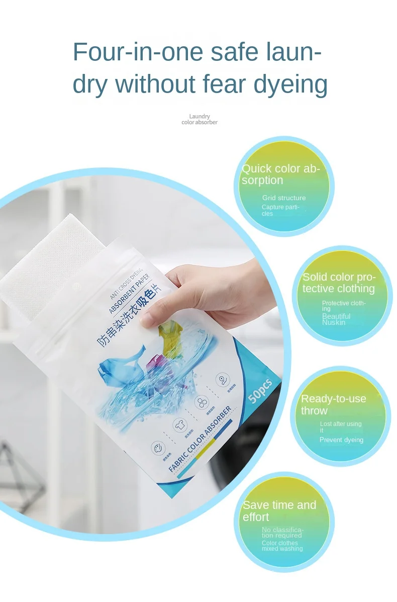 50 PCS/Bag Laundry Tablets Laundry Paper Anti-Staining Clothes Sheets Anti-String Mixing Color Absorption Washing Accessories