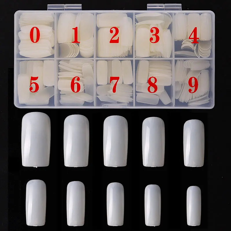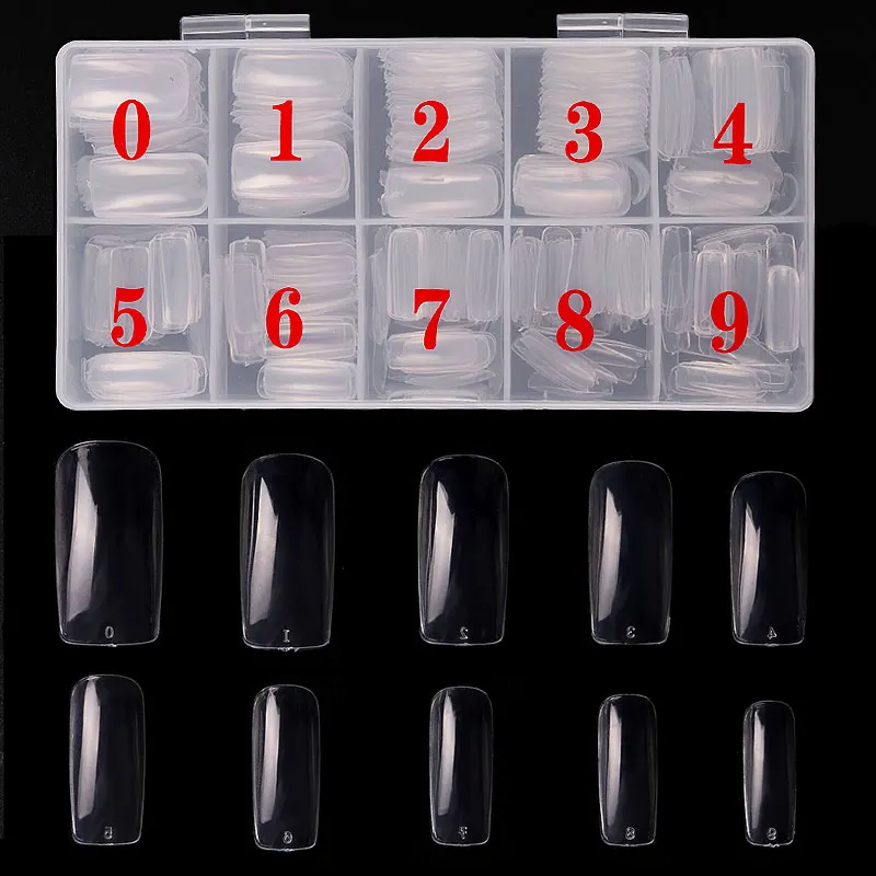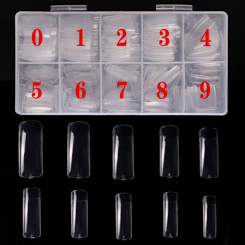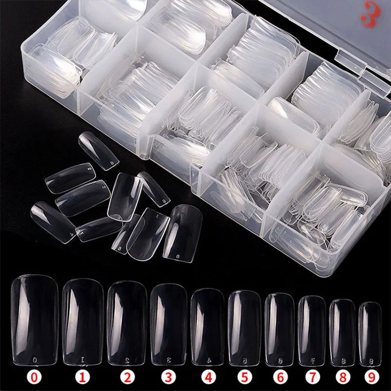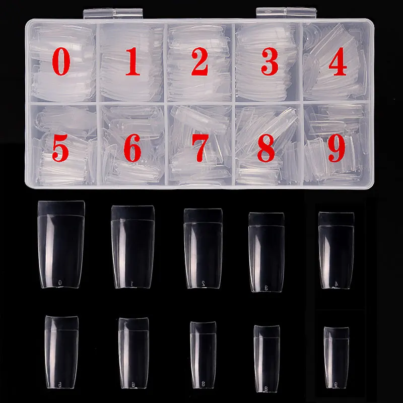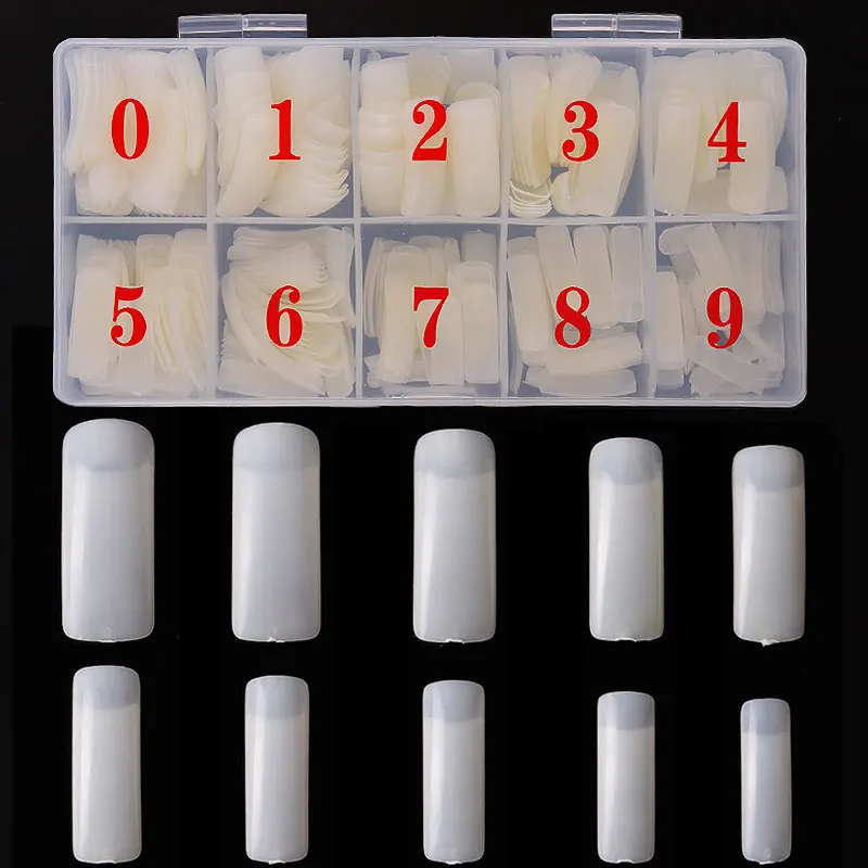 500pcs/Box Artificial Nail Tips Full Cover Nails Colored Nail Tips Acrylic Transparent Nail Capsules French Manicure False Nail