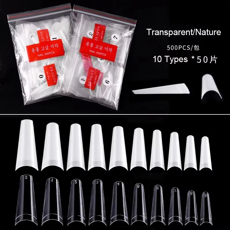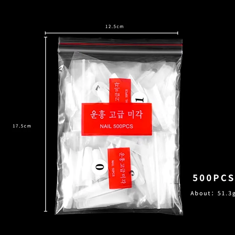 500pcs French Flat Headed False Nail Transparent Nature Acrylic Press On Nails Half Cover Manicure Art Extension Tools