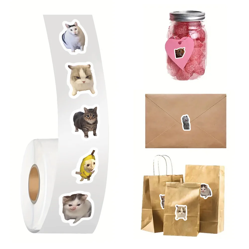 500pcs/roll Funny Cat Meme Stickers Sealing Label Decals Cute Decoration Notebook Phone Guitar Kids Reward Cartoon Sticker Gift