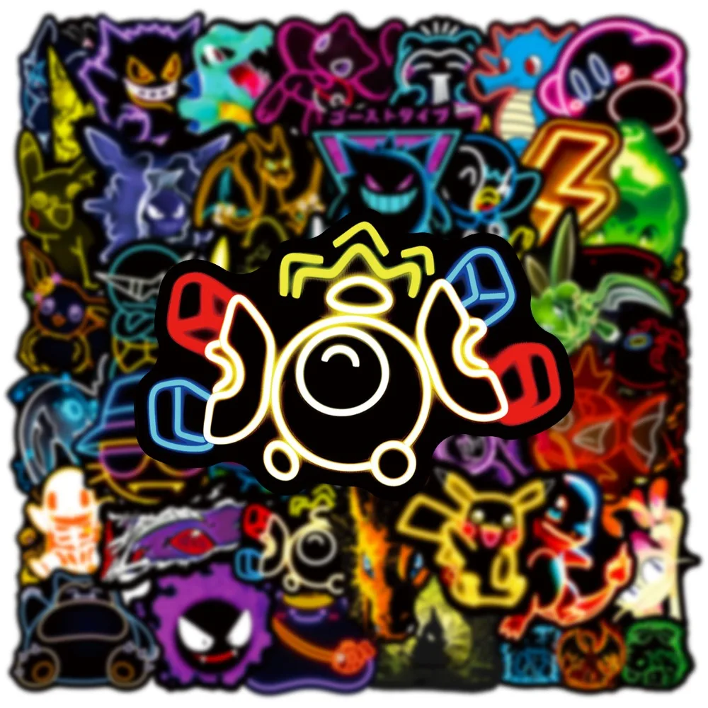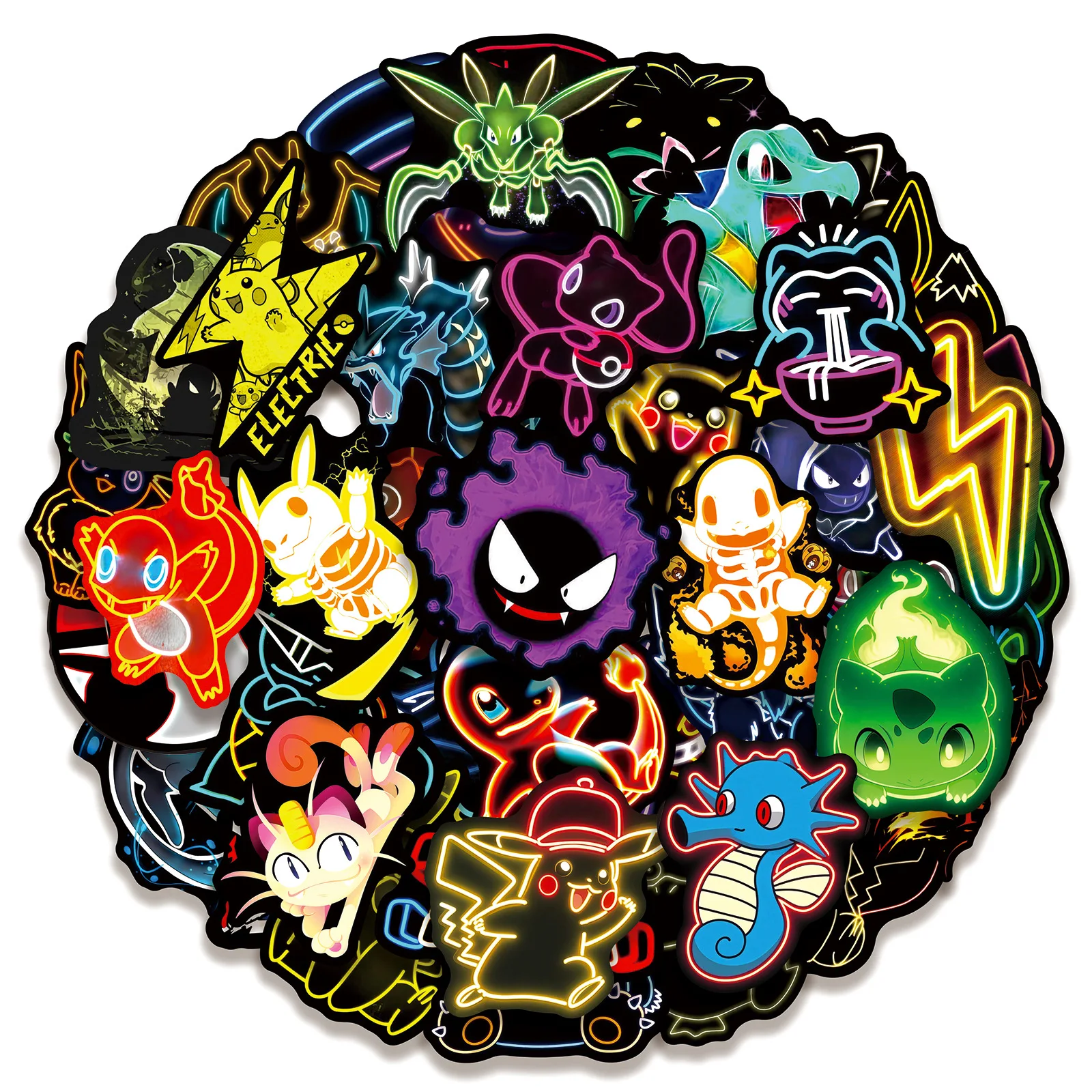 50pcs Anime Neon Pokemon Stickers Pikachu Cartoon Decals Waterproof DIY Phone Skateboard Laptop Cool Cute Sticker for Kids Toy