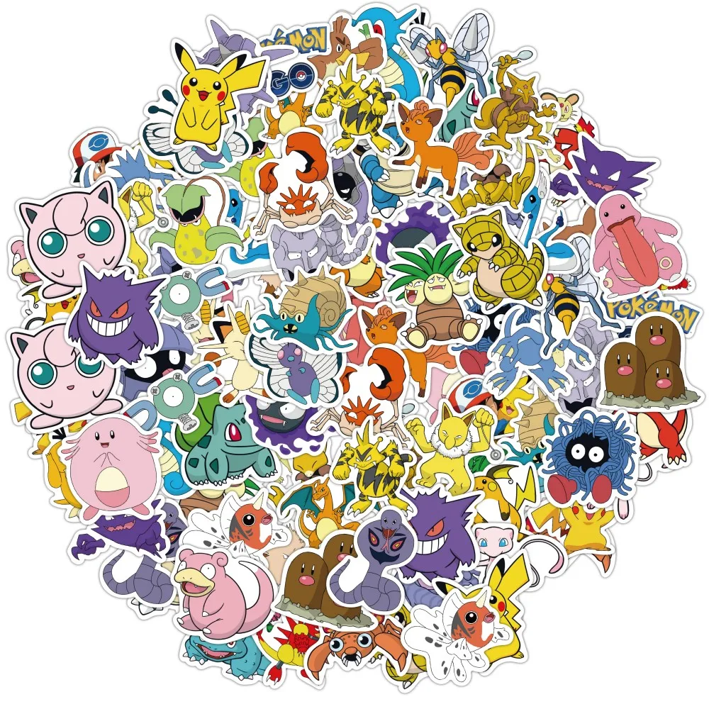 50PCS Anime Pokemon Cute Stickers Graffiti Decoration DIY Skateboard Phone Fridge Bike Cartoon Decals Sticker for Kid Toy Gift
