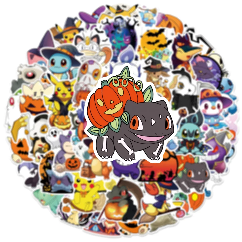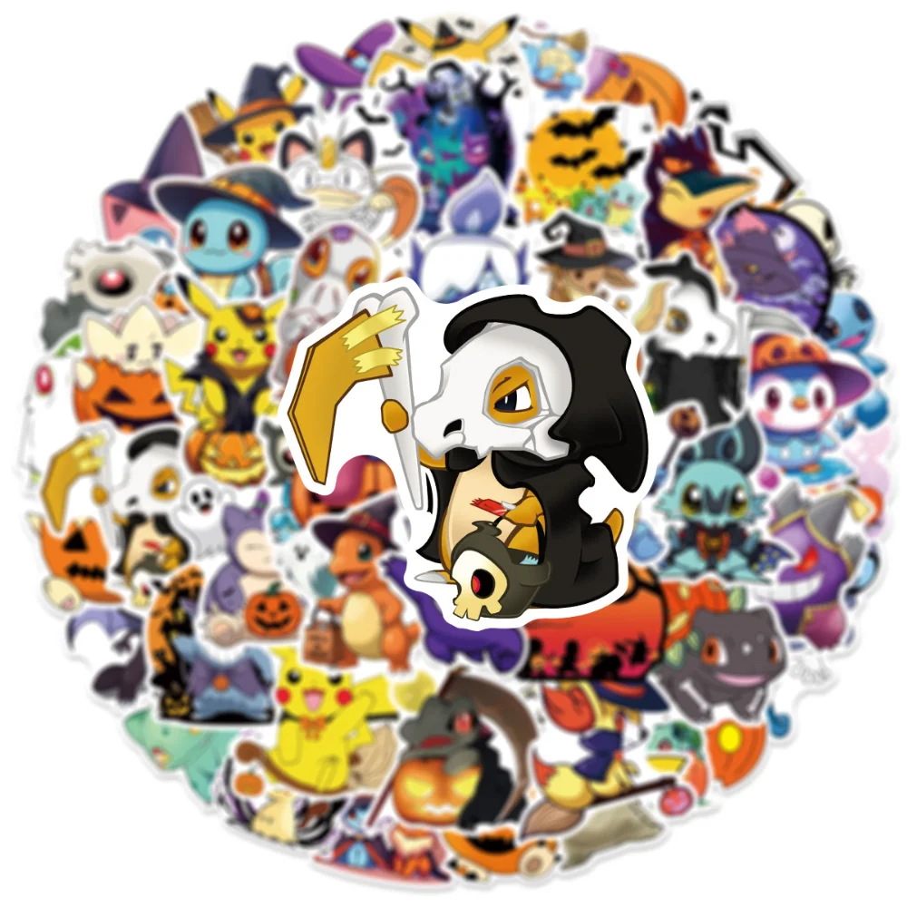 50Pcs Kawaii Halloween Pokemon Stickers Pikachu Decals DIY for Laptop Luggage Skateboard Phone Cartoon Kid Toy Sticker Gift