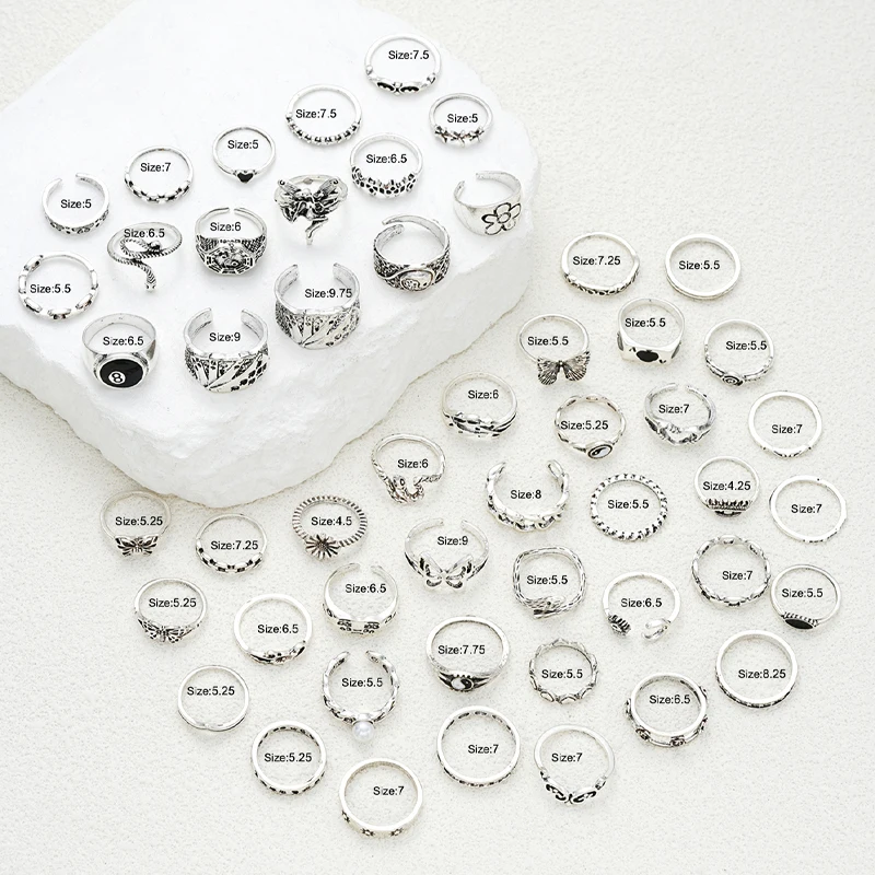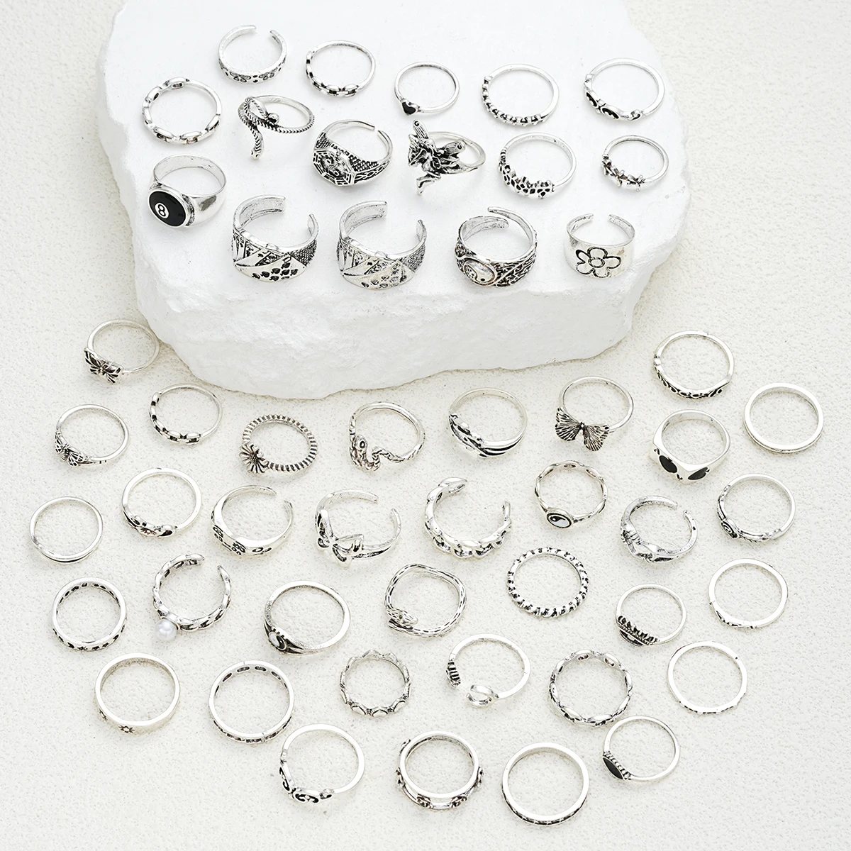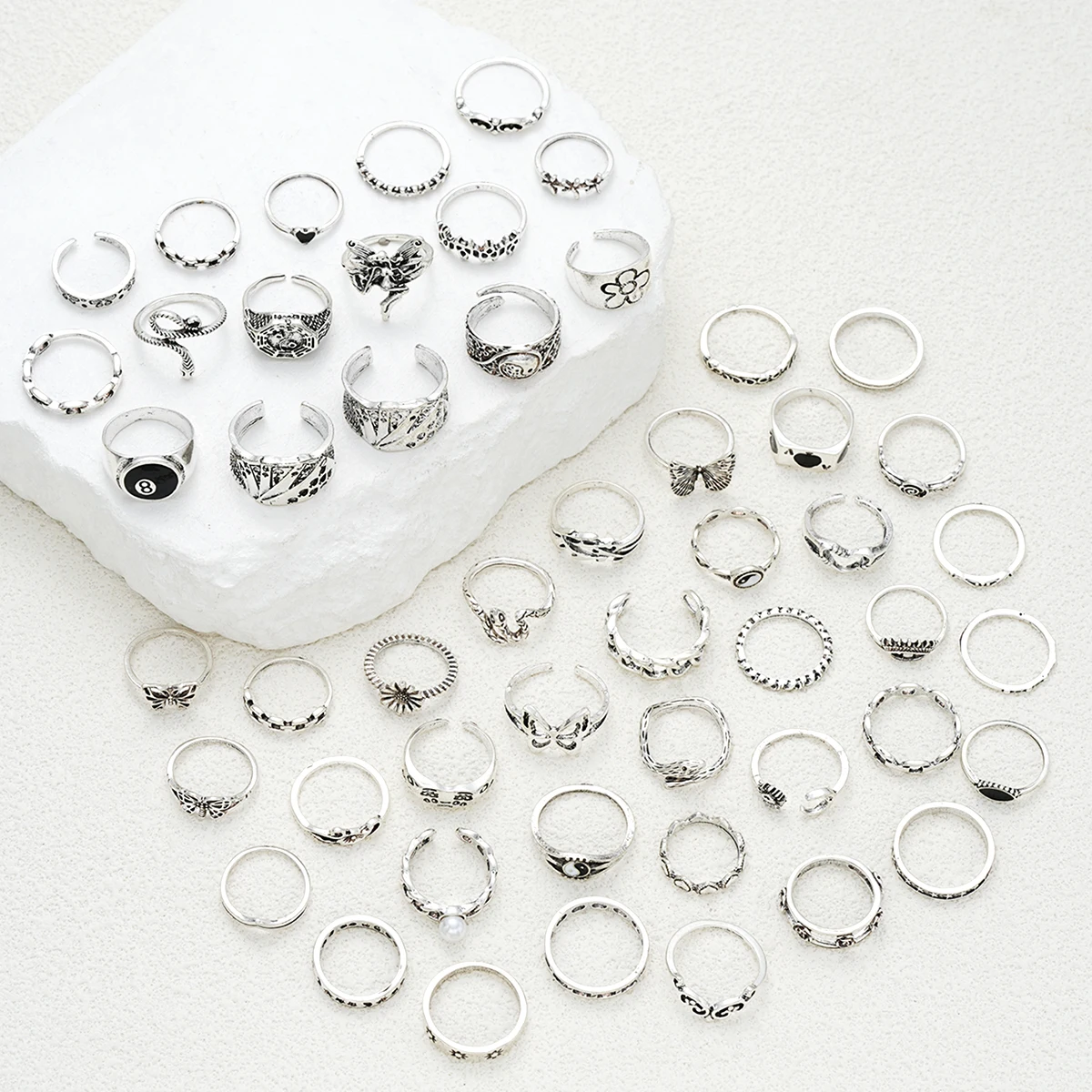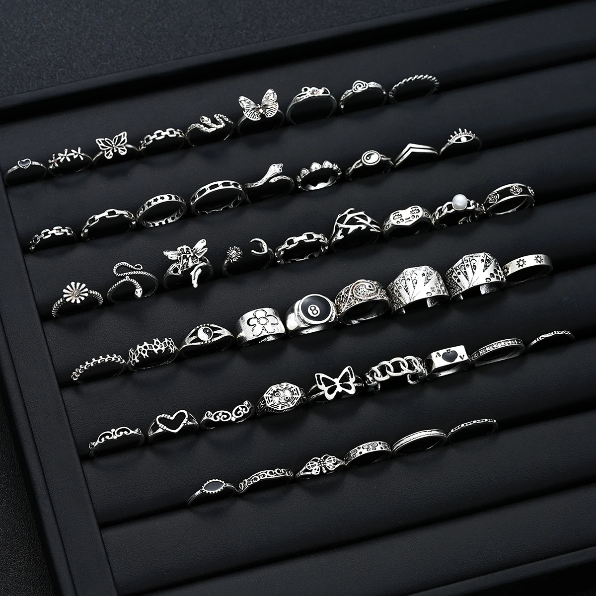 51pcs Gothic Punk Ring Set For Women Men Fashion Butterfly Heart Snake Design Match Ring Daily Wear Halloween Jewelry Gifts New