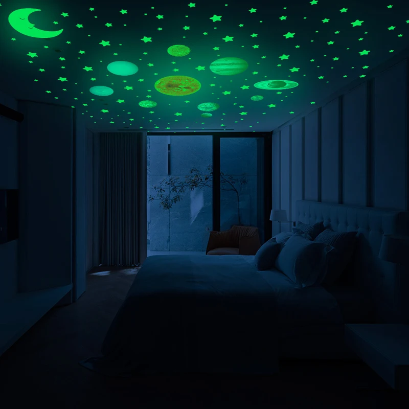 525PCS Box Packed Luminous Nine Planets Wall Sticker for Kids Bedroom Living Room Glow In The Dark DIY Party Home Decor