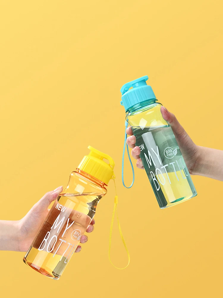 550ml Plastic Water Bottle Portable Sports Cup With Anti Drop Rope Outdoor Water Container Color Transparent Pet Flip Cover