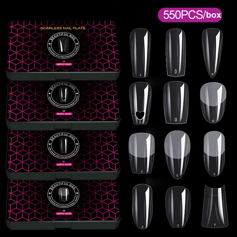 550pcs/box False Nails Press on Nails Transparent Ultra-thin Traceless Scrub Fake Nail Tips Mixed Size Faux Ongles Fantaisie