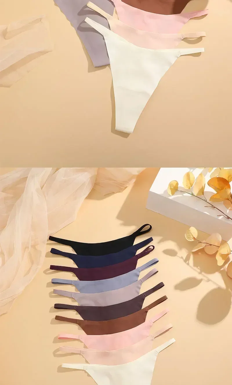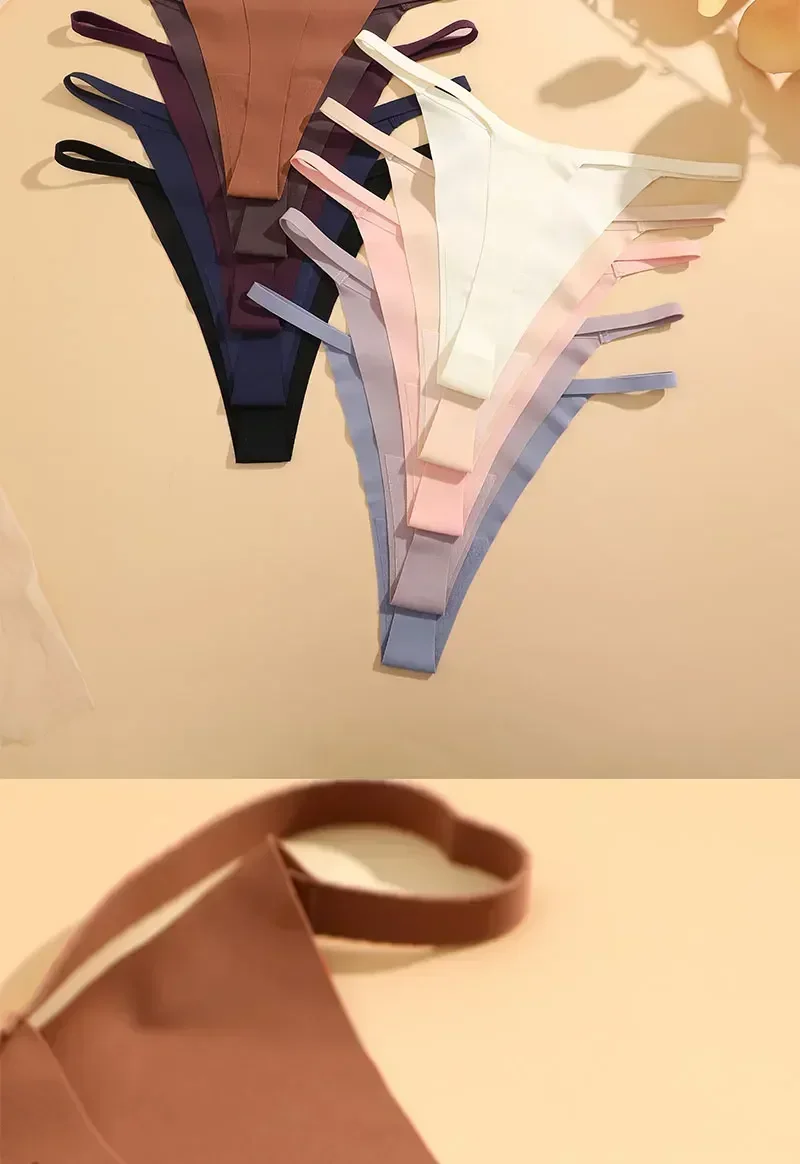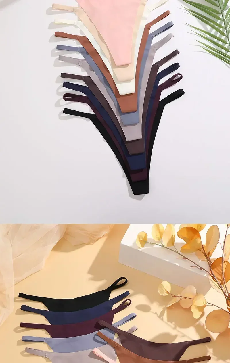 5PCS/Set Sexy Seamless Ics Silk Thongs for Women Low Rise Panties Female Ultra Thin Breathable Underwear G-String T-Back Breifs