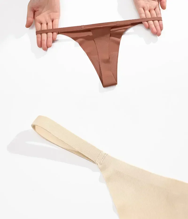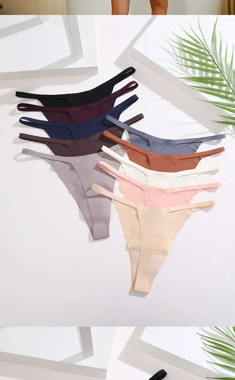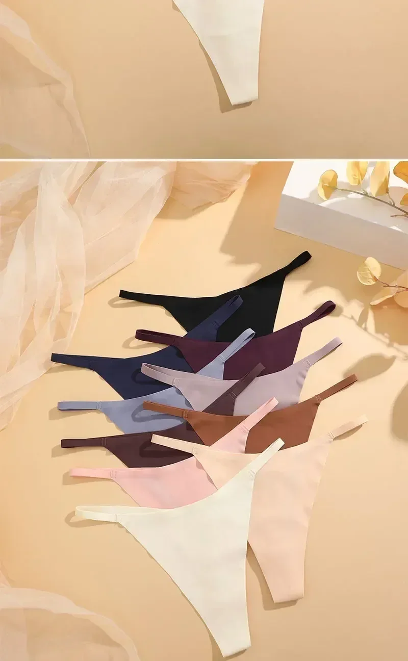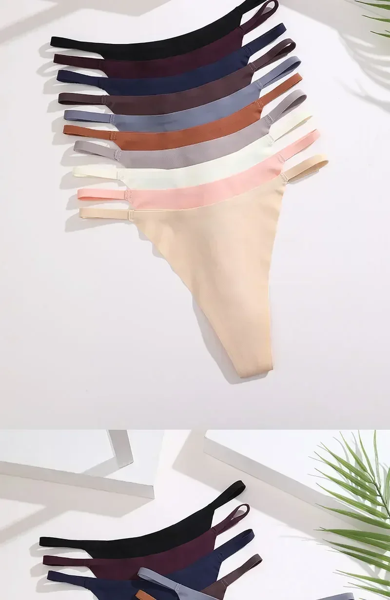 5PCS/Set Sexy Seamless Ics Silk Thongs for Women Low Rise Panties Female Ultra Thin Breathable Underwear G-String T-Back Breifs