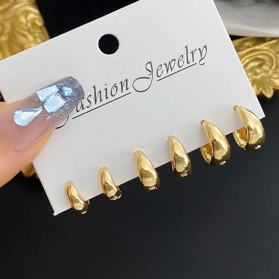 18 Pcs/Set Large C-Shape Teardrop Hoop Earrings for Women Fashion Gold Color Exaggerated Twist Earring Daily Wear Jewelry Gifts