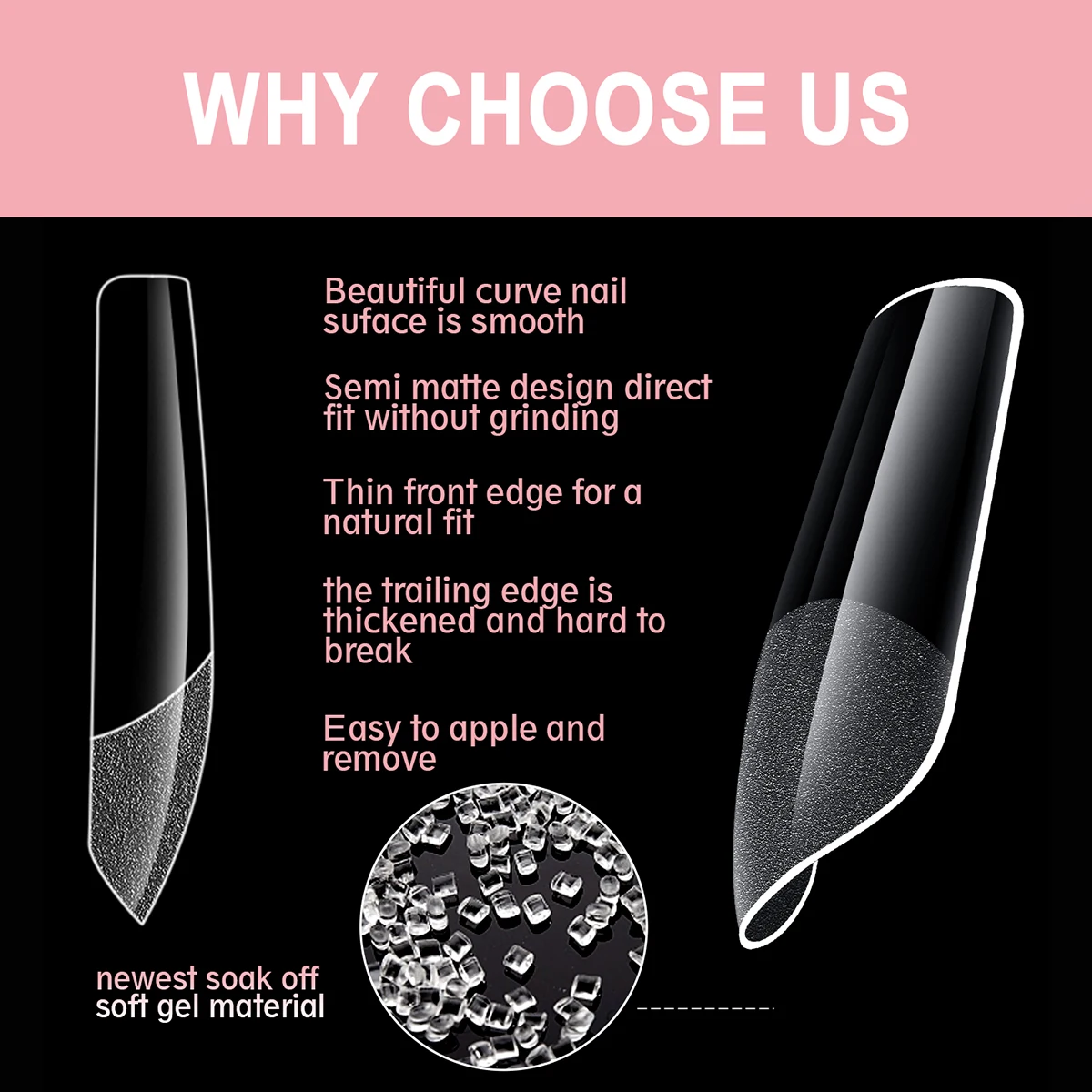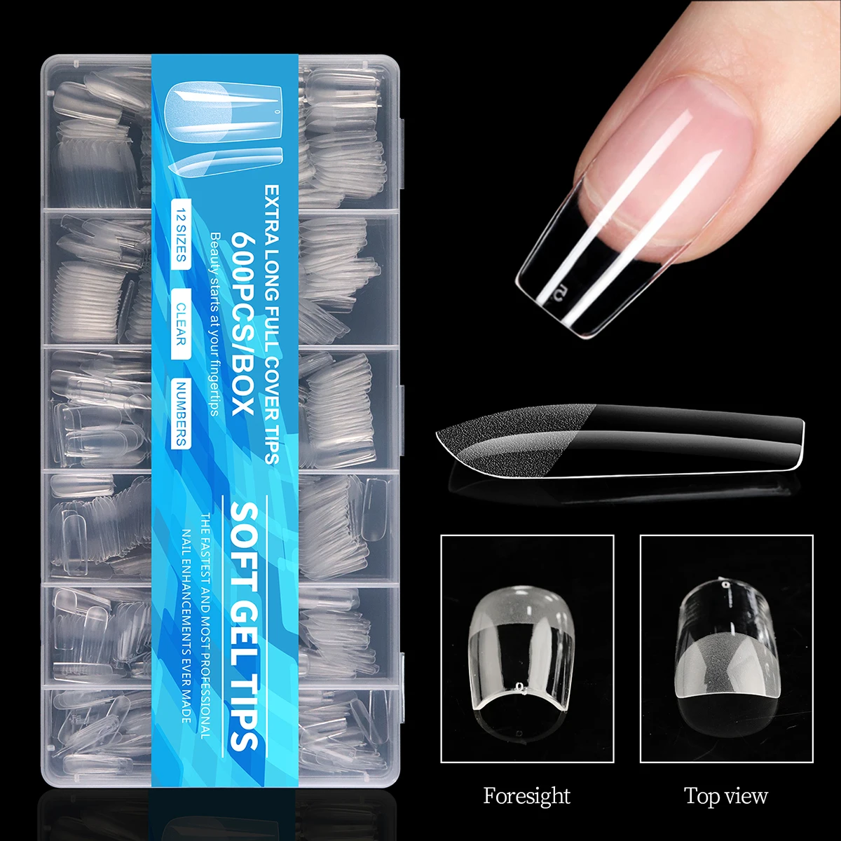 600Pcs Full Cover Half Frosted False Nail Tips Square French Fake Soak Off Gel Nail Extension Tips Press On Nails Nail Supplies