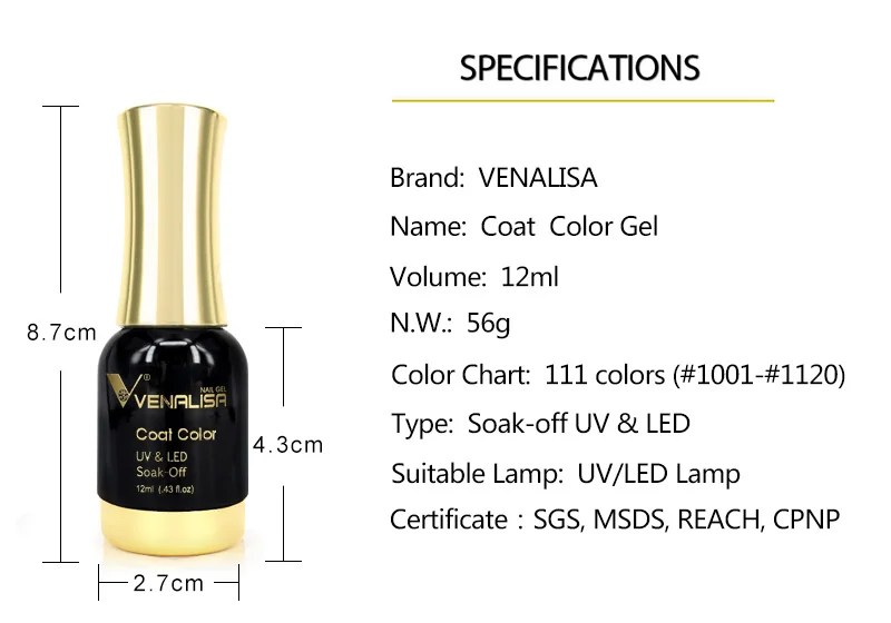Color palette of 12ml venalisa nail gel polish