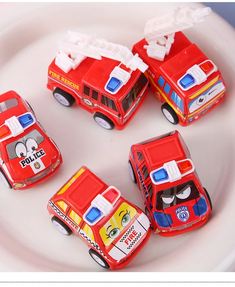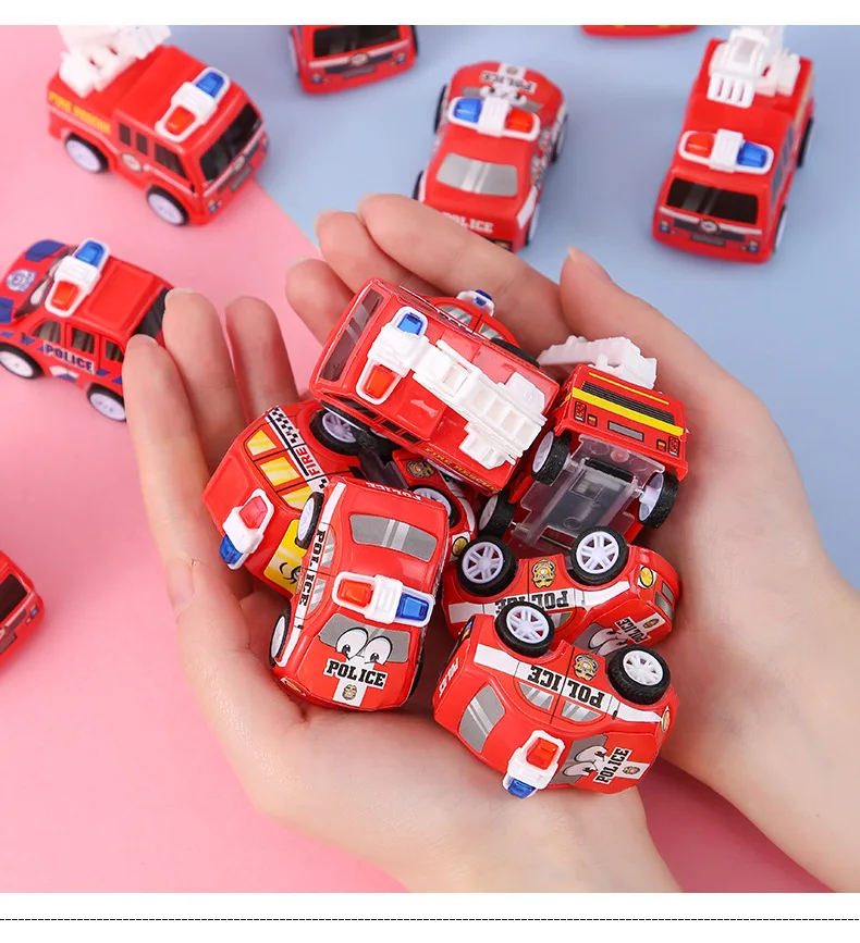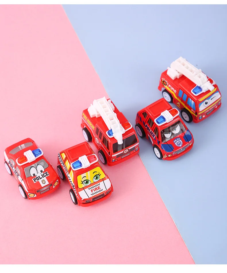 6Pcs Kids Cartoon Mini Pull Back Fire Truck Police Car Toys for Kids Birthday Party Favors Baby Shower Gift