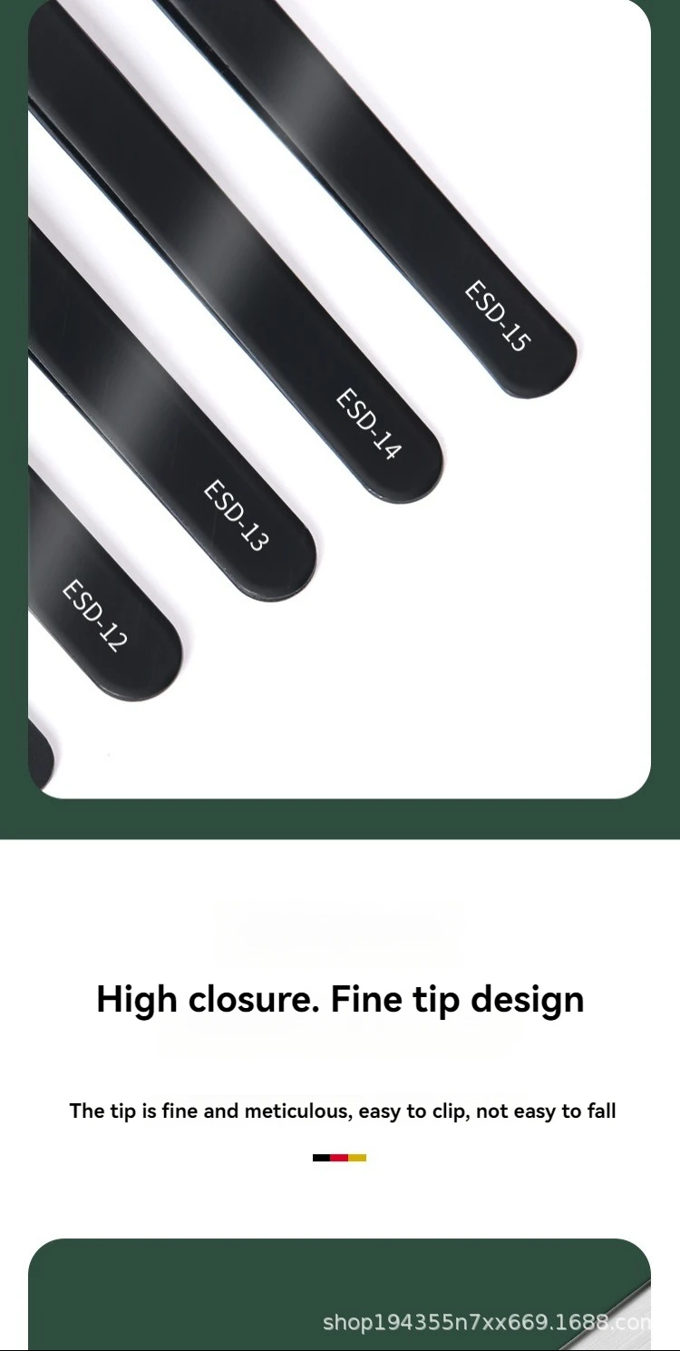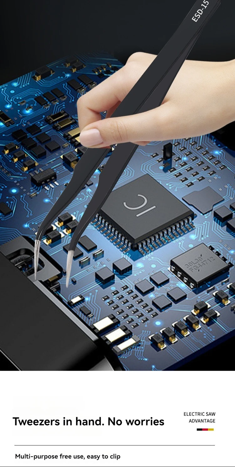 • ESD Anti-Static :The ESD anti-static feature of these tweezers ensures safe operation in electronic equipment without causing damage.