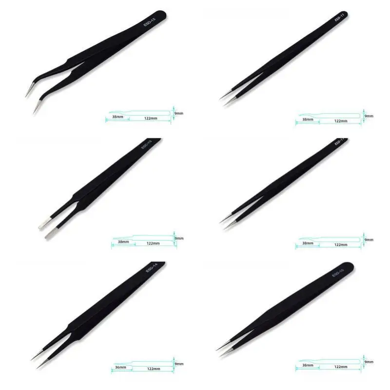 96 reviews for 6pcs Precision Long Tweezers Set ESD Anti-Static Stainless SteelTweezers Repair Tools For Electronics Repair Soldering Craft