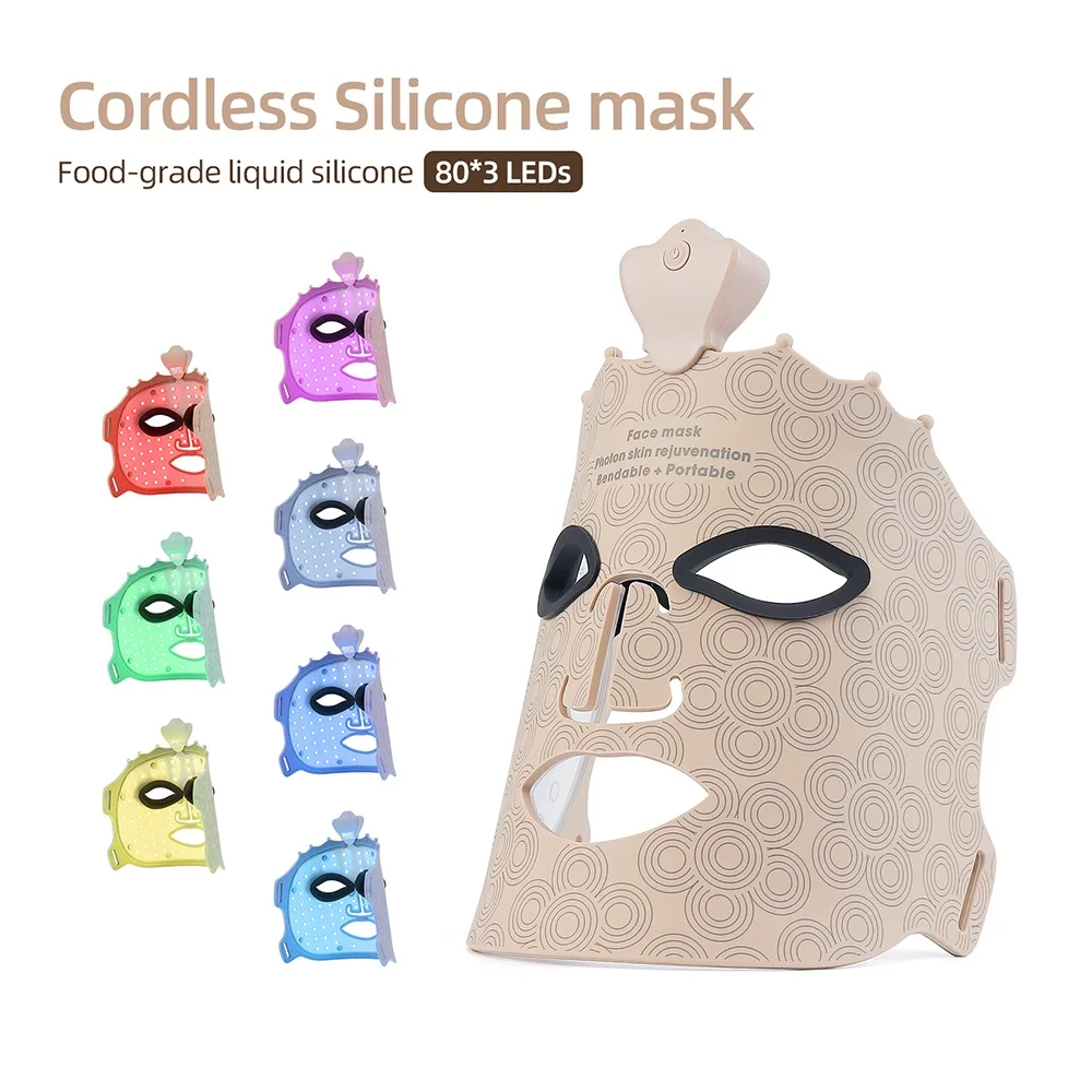 7 Colors Photon Silicone Face LED Mask 3D Facial Beauty Mask Red Light Therapy Skin Care Repair Skin Brightening Wireless Use
