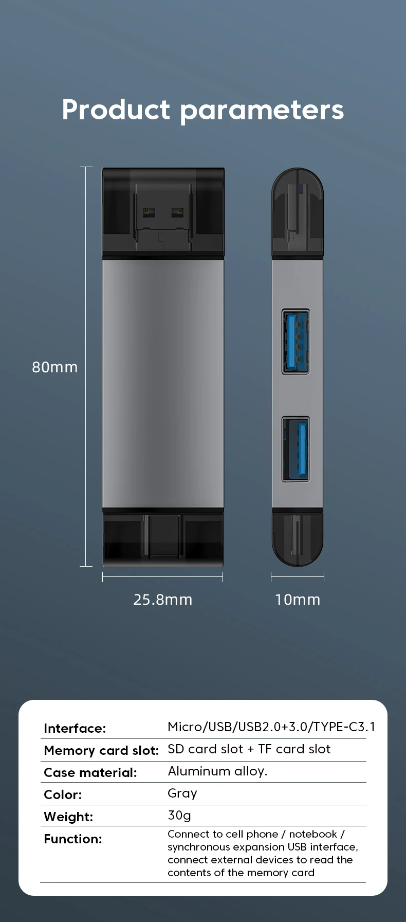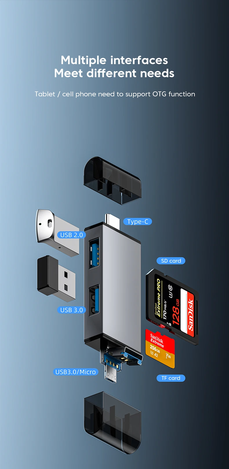 7 In 1 Multifunction Usb 3.0 Card Reader Micro TF SD Card Memory Reader USB Flash Drive Type C Card Adapter OTG