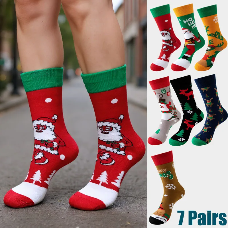 7 Pairs New Arrival Autumn Winter Women socks Cotton Long Christmas Socks Casual Men’s Socks Santa Claus Christmas Gift 36-45