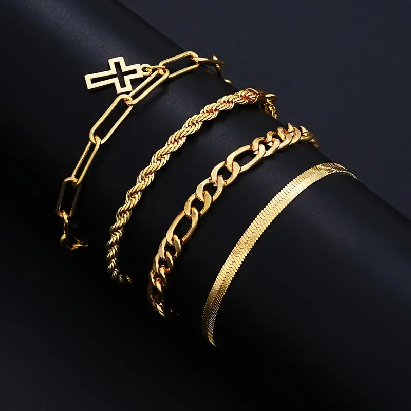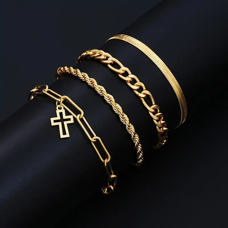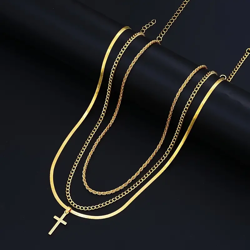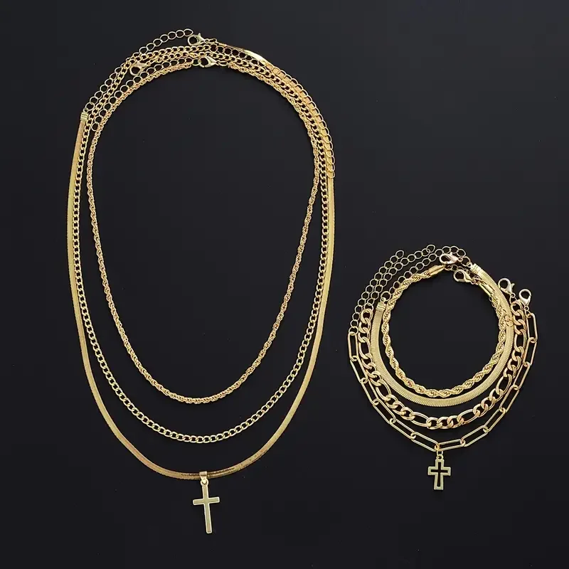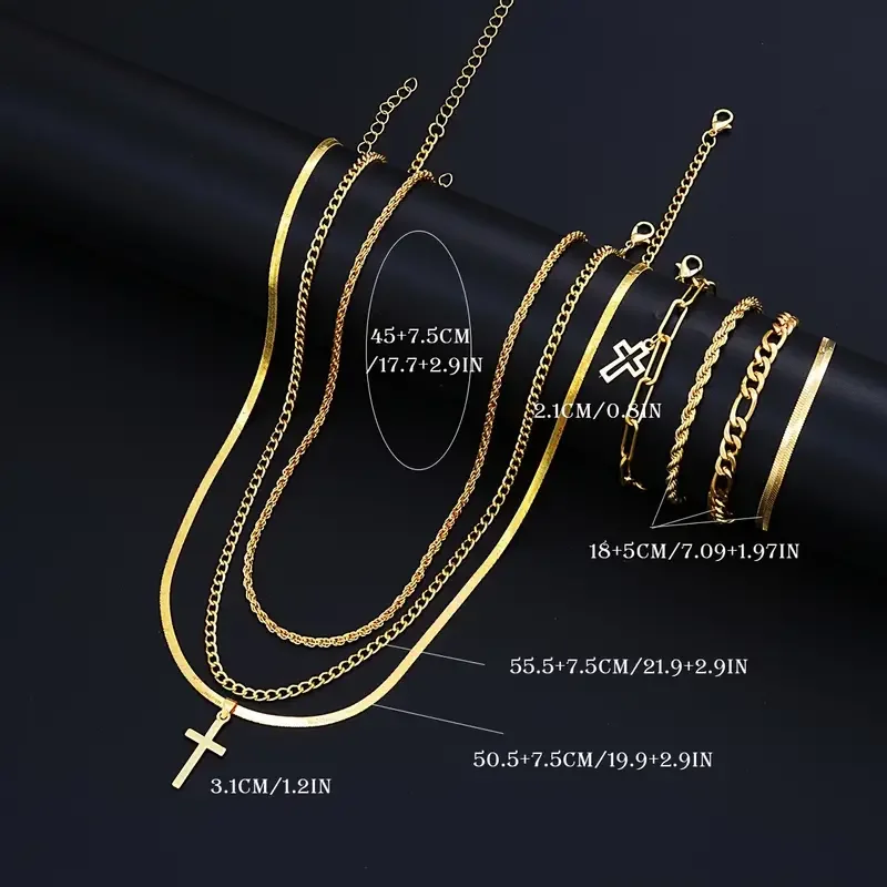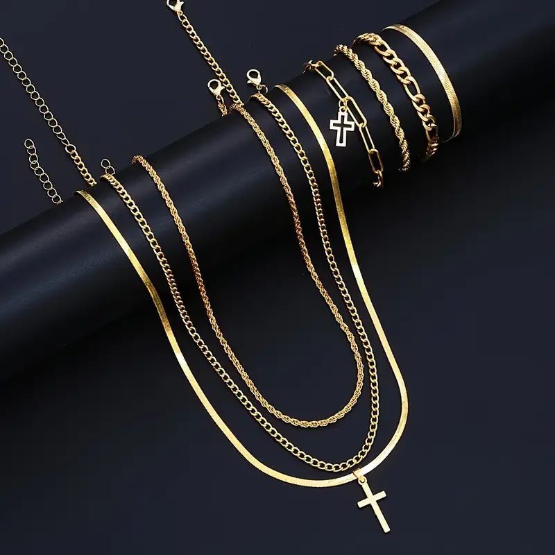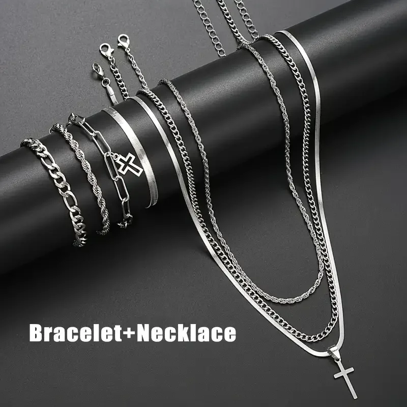 7-Piece Elegant Stainless Steel Minimalist Cross Pendant Jewelry Set for Men Chain Necklace Bracelet Jewelry for Everyday Wear