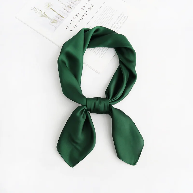 New Luxury Brand Satin Square Scarf Print Hair Ribbon Fashion Scarf for Women Neckerchief Bandana Solid Colors Shawl Headband