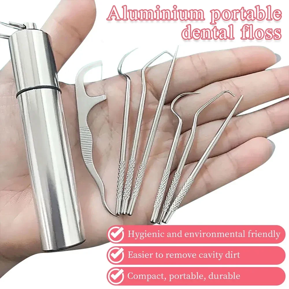 7PCS Aluminum Toothpicks Set, Reusable Tooth Floss Picks for Teeth Cleaning & Oral Care, Portable Flossing Tool