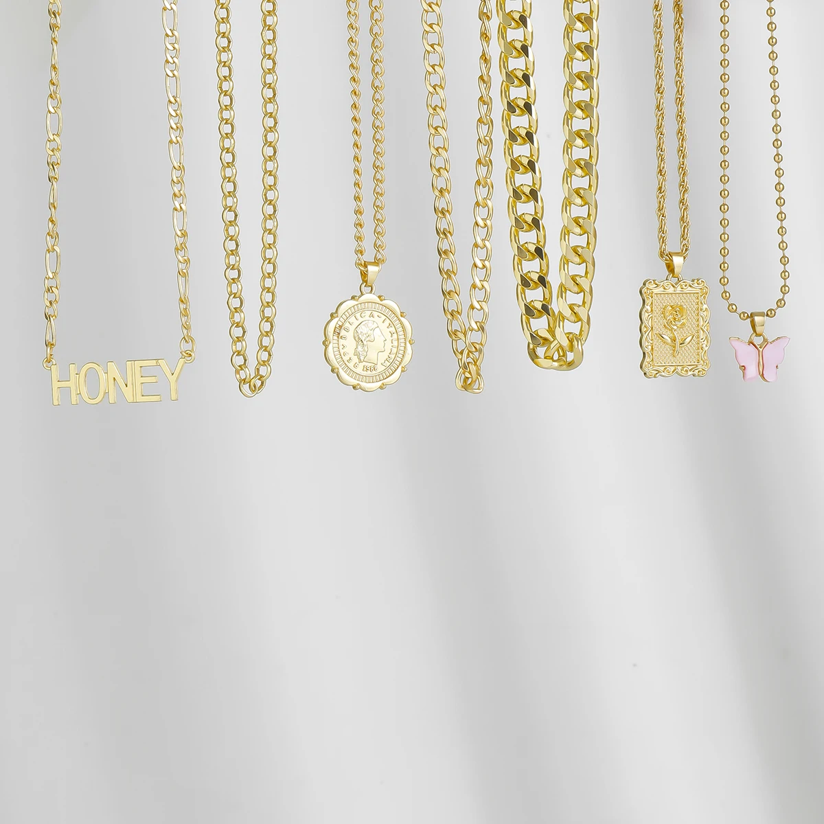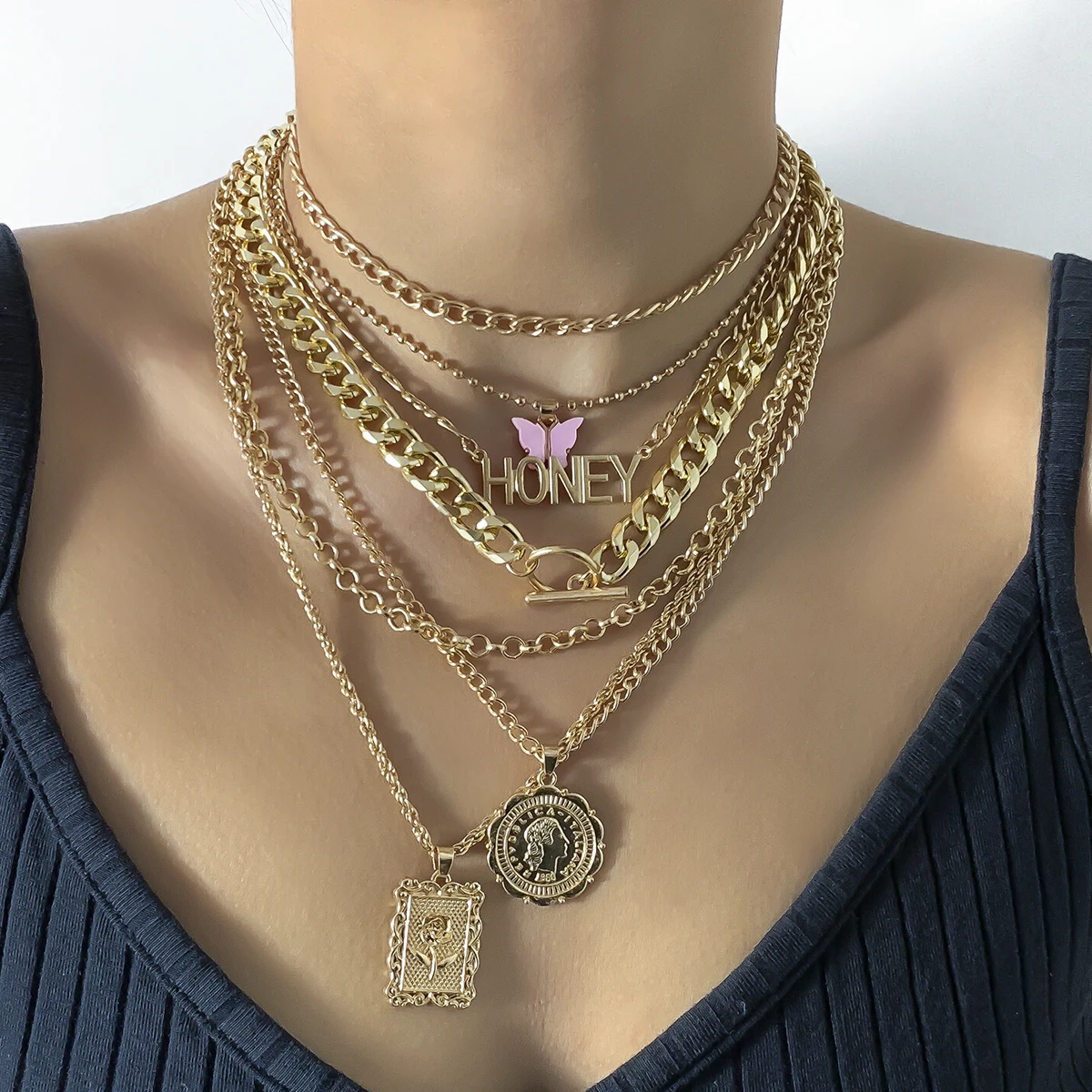 38 reviews for 7Pcs/Set Punk Butterfly Coin Rose Flower Pendant Necklace for Women Vintage OT Buckle Honey Chain Grunge Jewelry Steampunk New