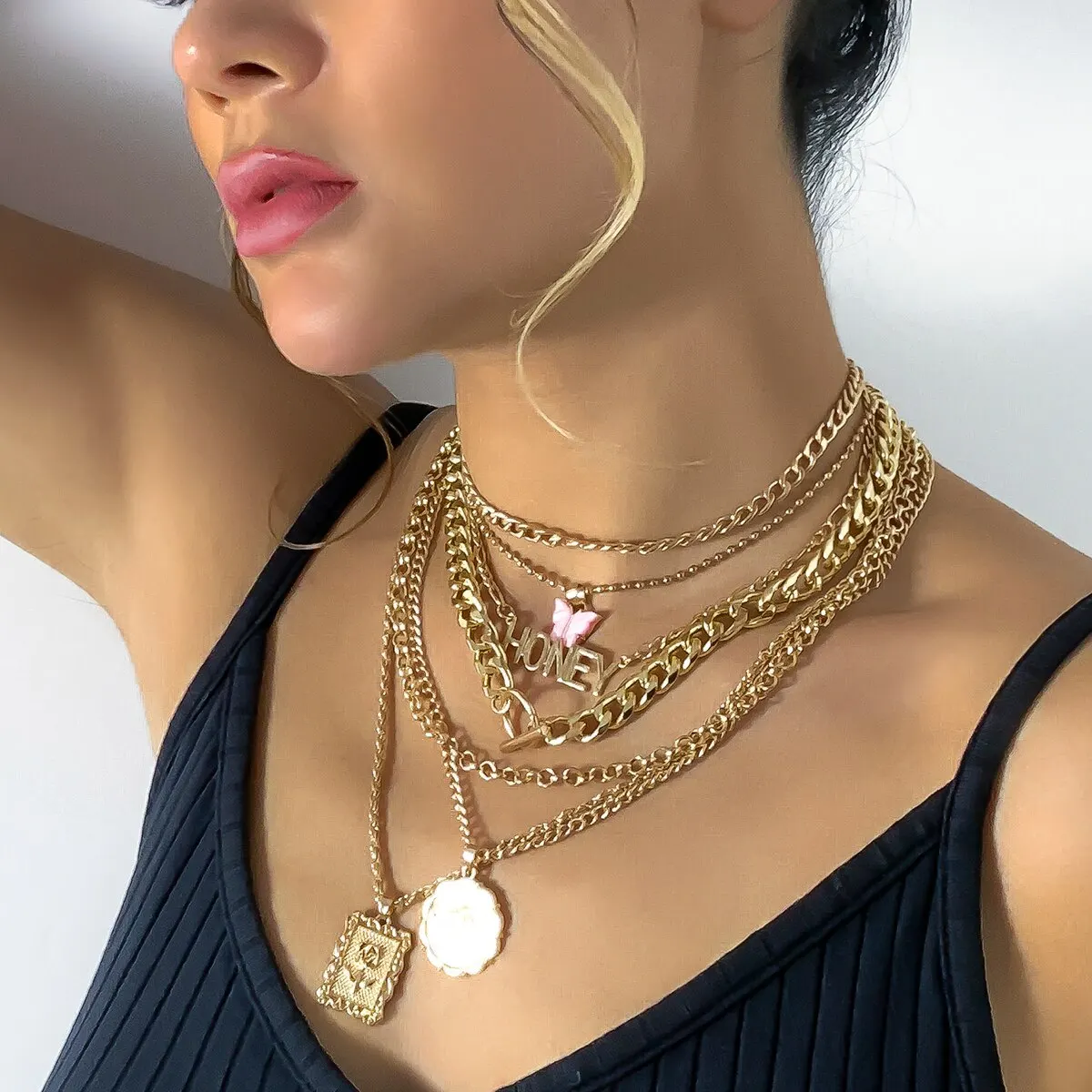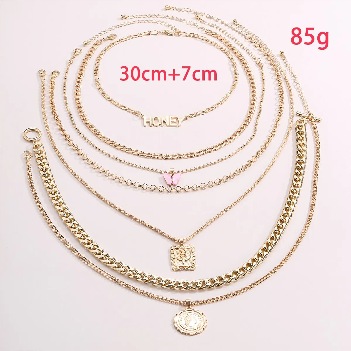 38 reviews for 7Pcs/Set Punk Butterfly Coin Rose Flower Pendant Necklace for Women Vintage OT Buckle Honey Chain Grunge Jewelry Steampunk New