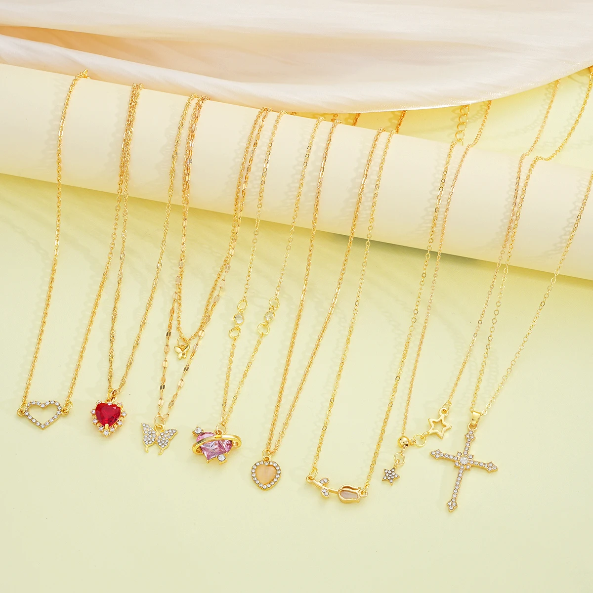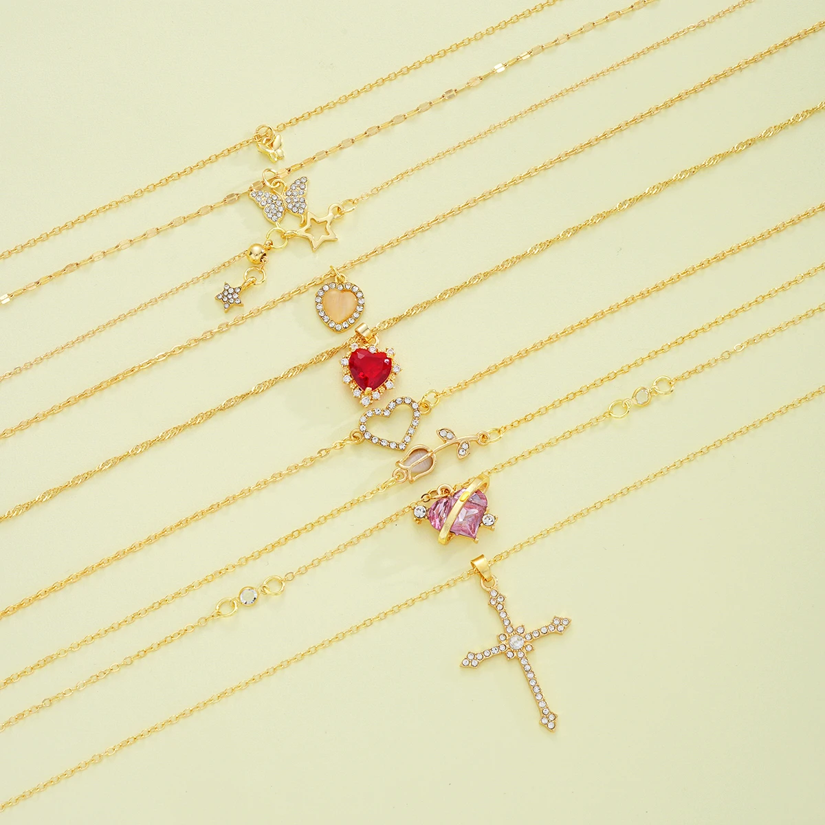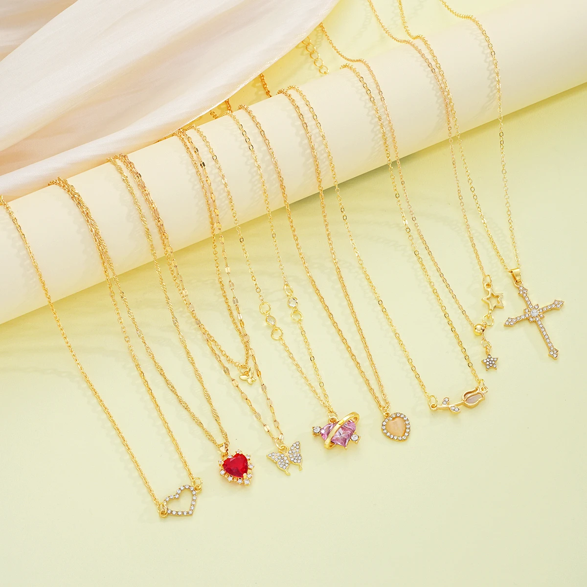 8 Pcs Simple Temperament Necklace Set For Women Elegant Gold Color Crystal Butterfly Cross Rose Heart Star Pendant Necklaces