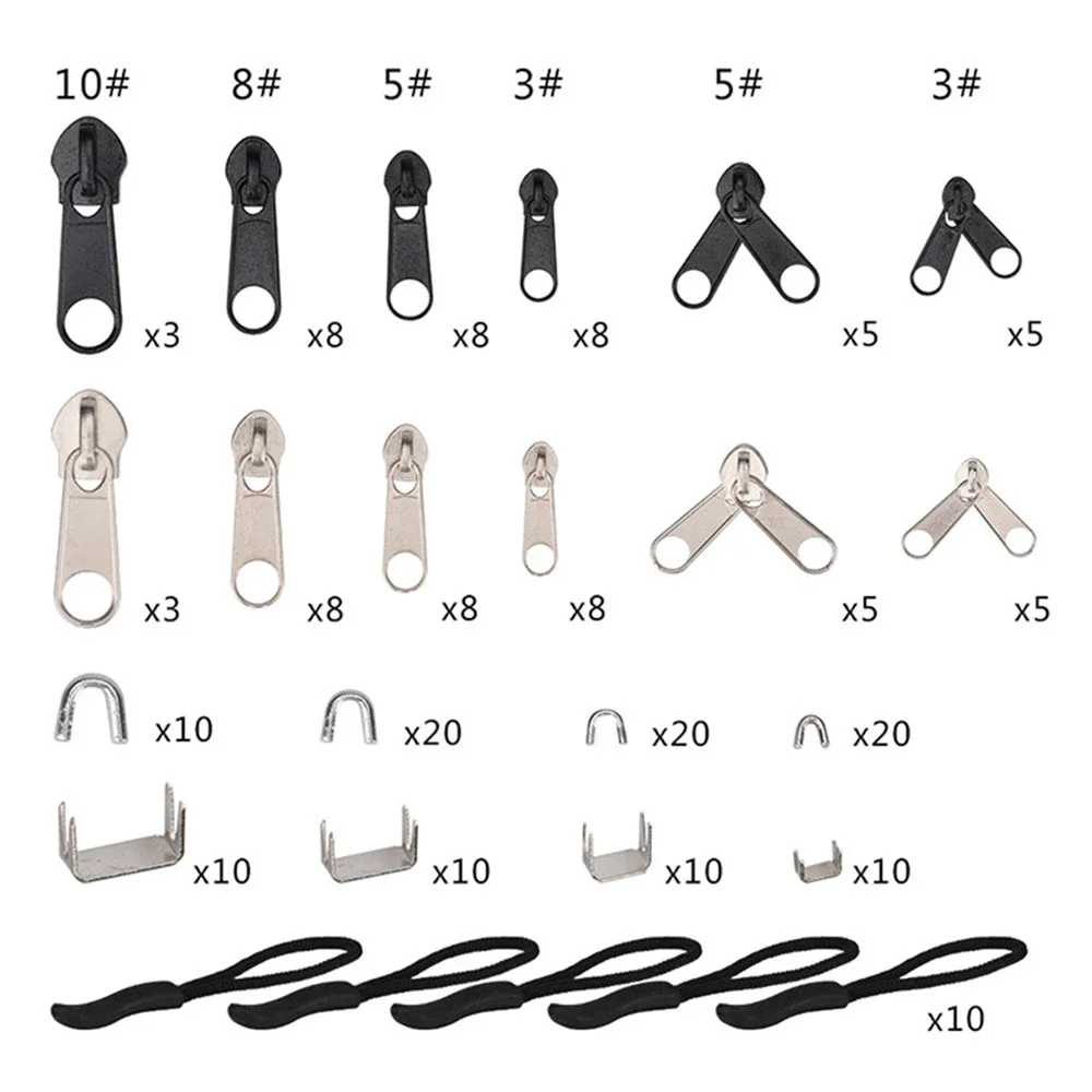 85Pcs/set Zipper Repair Kit Easy Fix Zipper Slider Head Puller Closure Universal Replacement Broken/Wearable Household Removable
