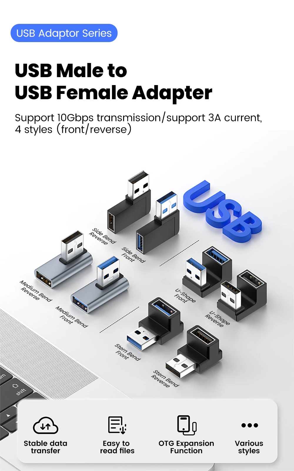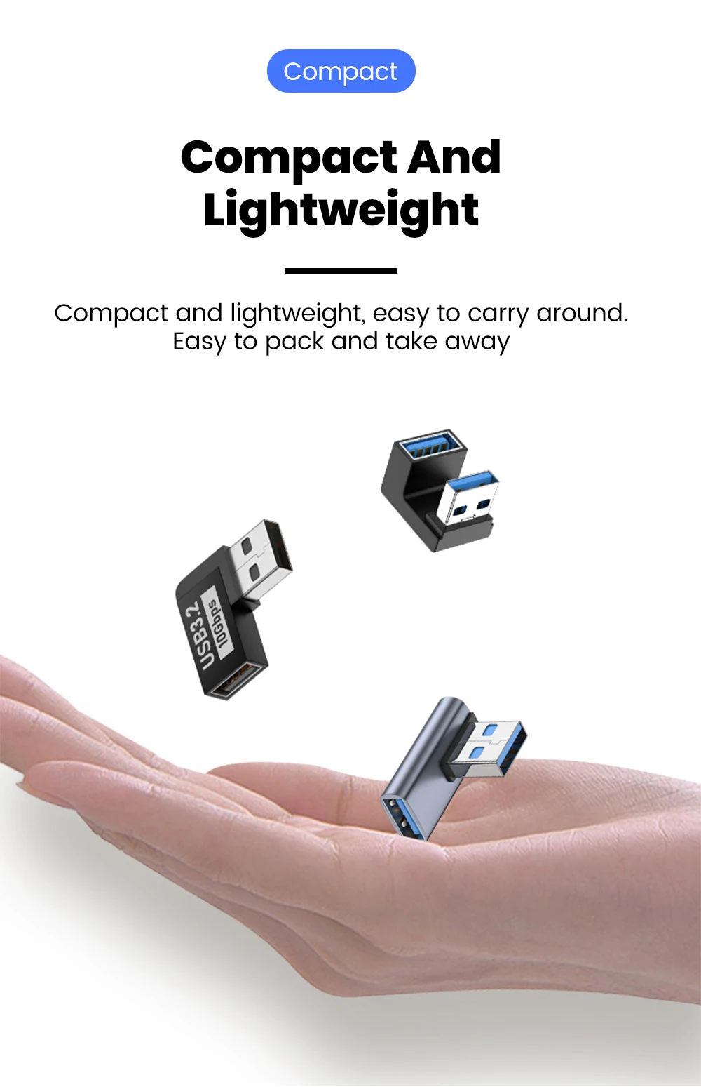 90 Degree USB 3.2 Male to Female Right Angle Extension Adapter USB Upward Elbow Adapter 10Gbps For Laptop PC Connector Converte