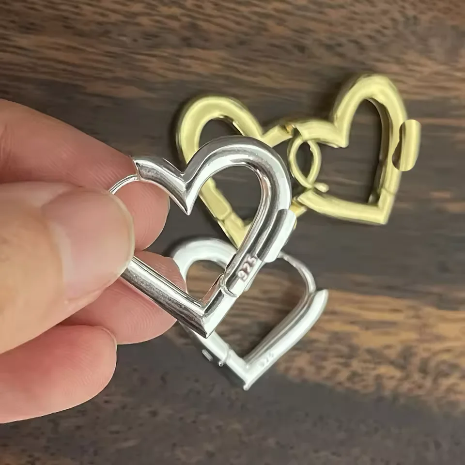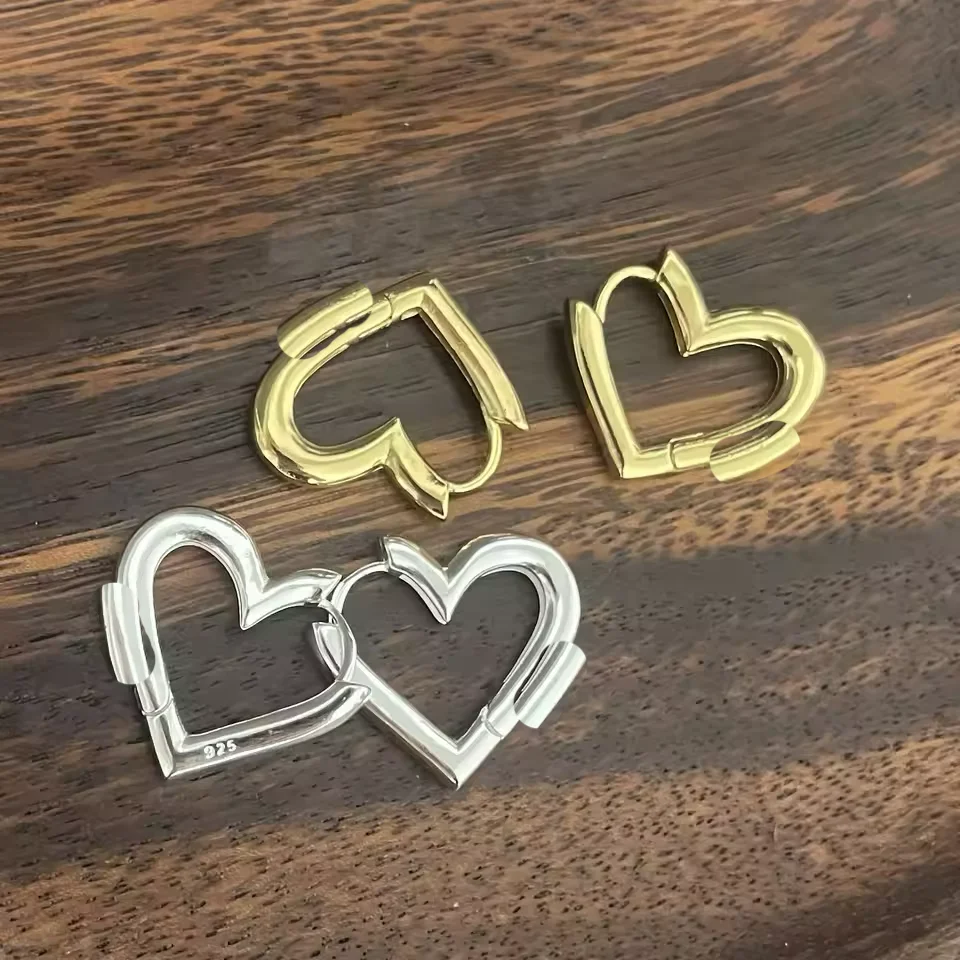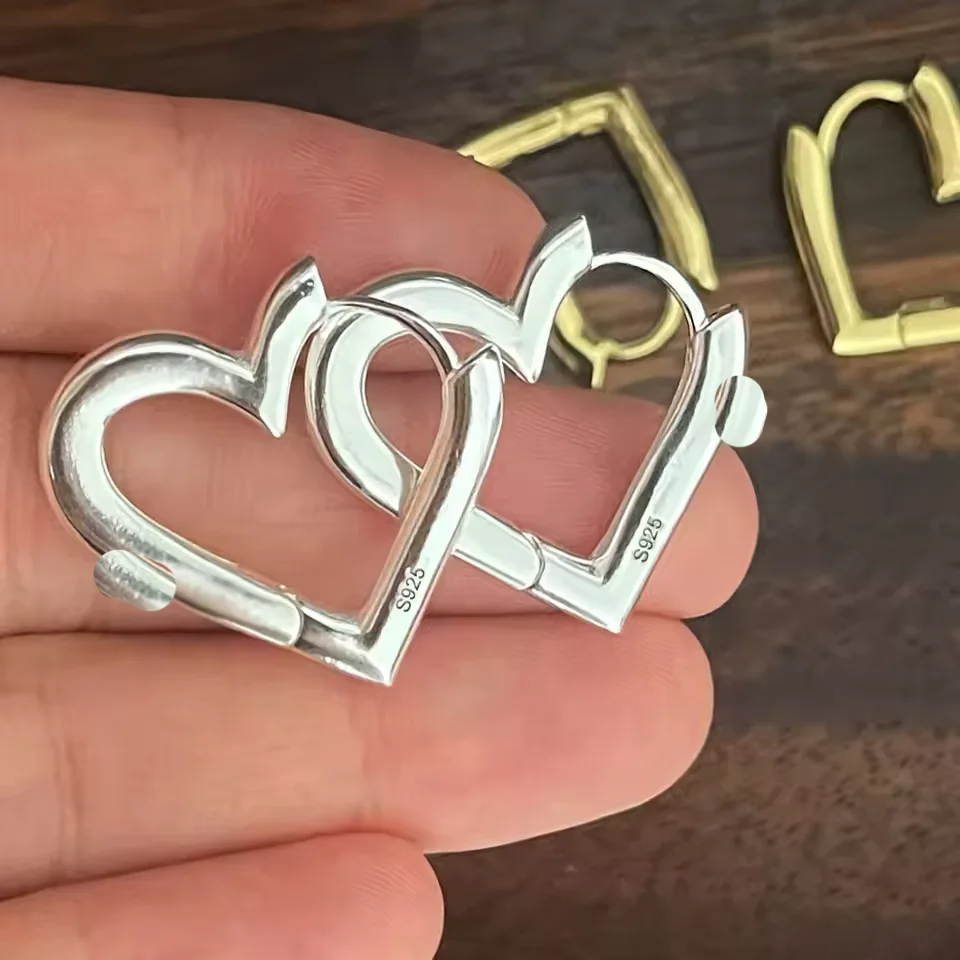 925 Sterling Silver Earrings For Women Geometric Trendy Simple Big Heart Earring Jewelry Prevent Allergy Party Accessories