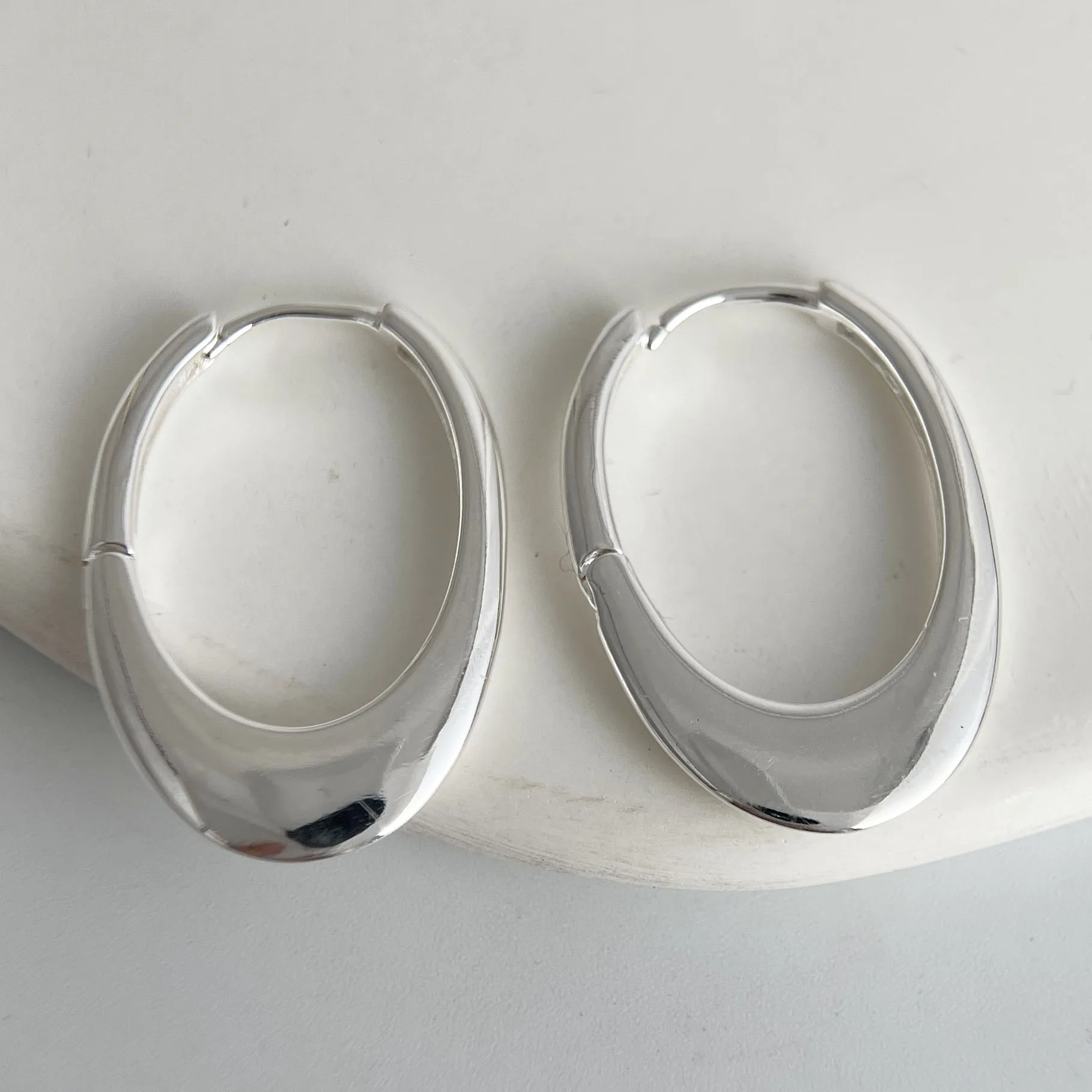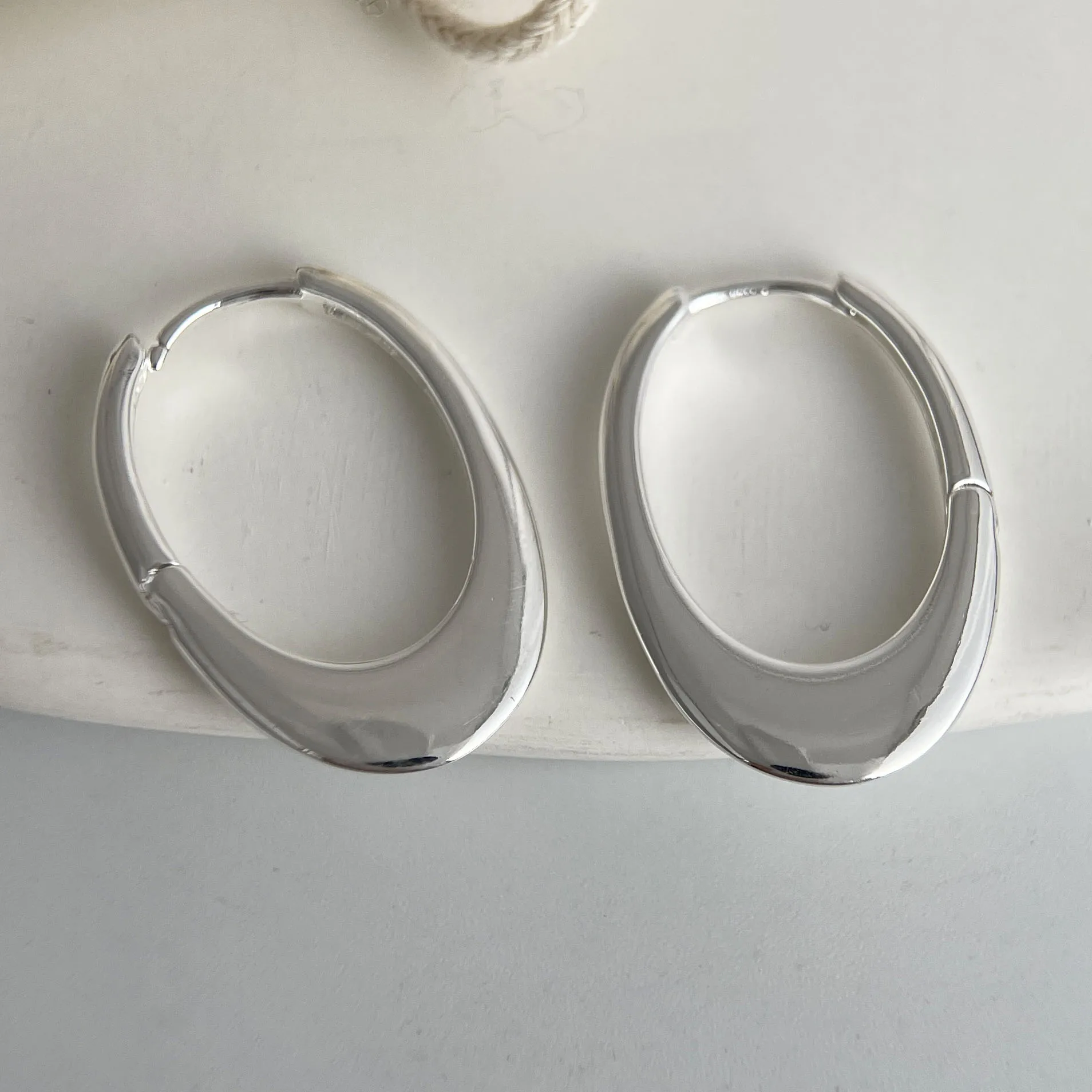 925 Sterling Silver Earrings For Women Trendy Shinning Oval Big Hollow Earring Jewelry Prevent Allergy Party Accessories Gift
