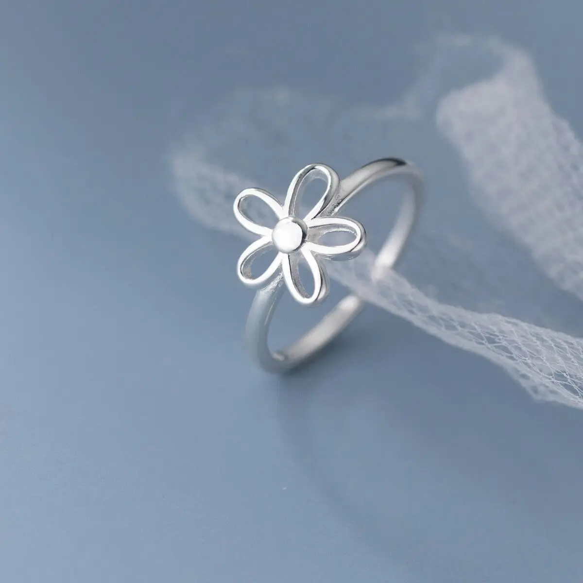 925 Sterling Silver Geometric Irregular Hollowout Flower Rings for Women Bohemian Retro Adjustable Antique Personality Ring