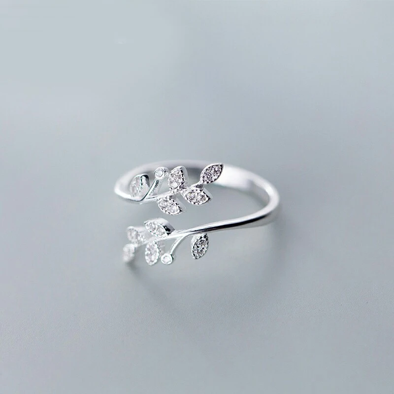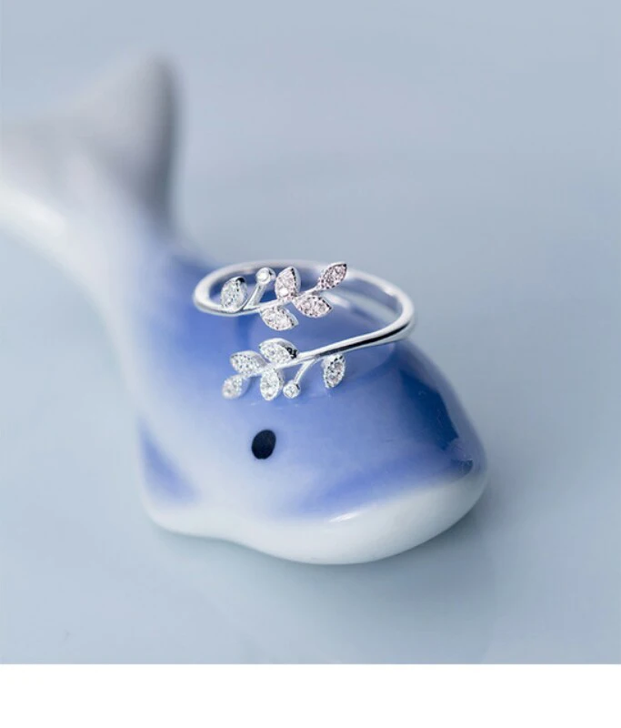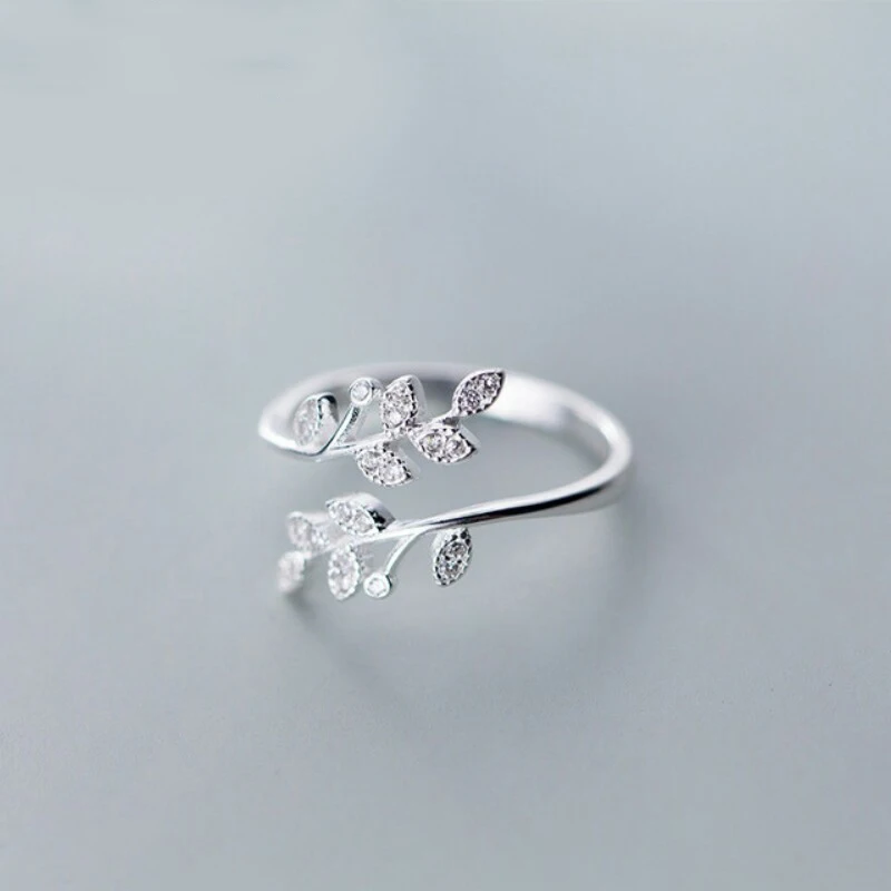 925 Sterling Silver Korean Zircon Leaf Shape Ring Female Index Finger Retro Fashion Handmade Jewelry Couple Gift