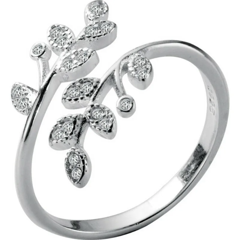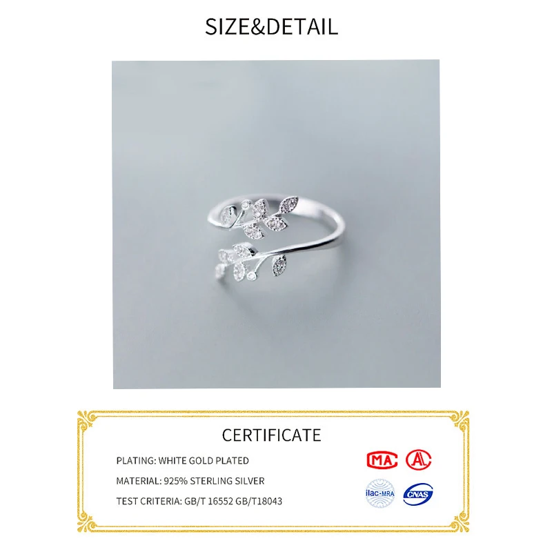 925 Sterling Silver Korean Zircon Leaf Shape Ring Female Index Finger Retro Fashion Handmade Jewelry Couple Gift