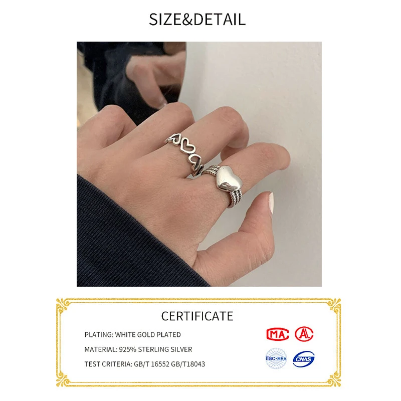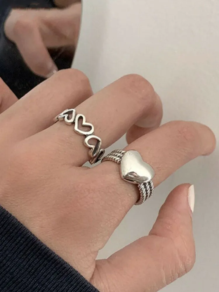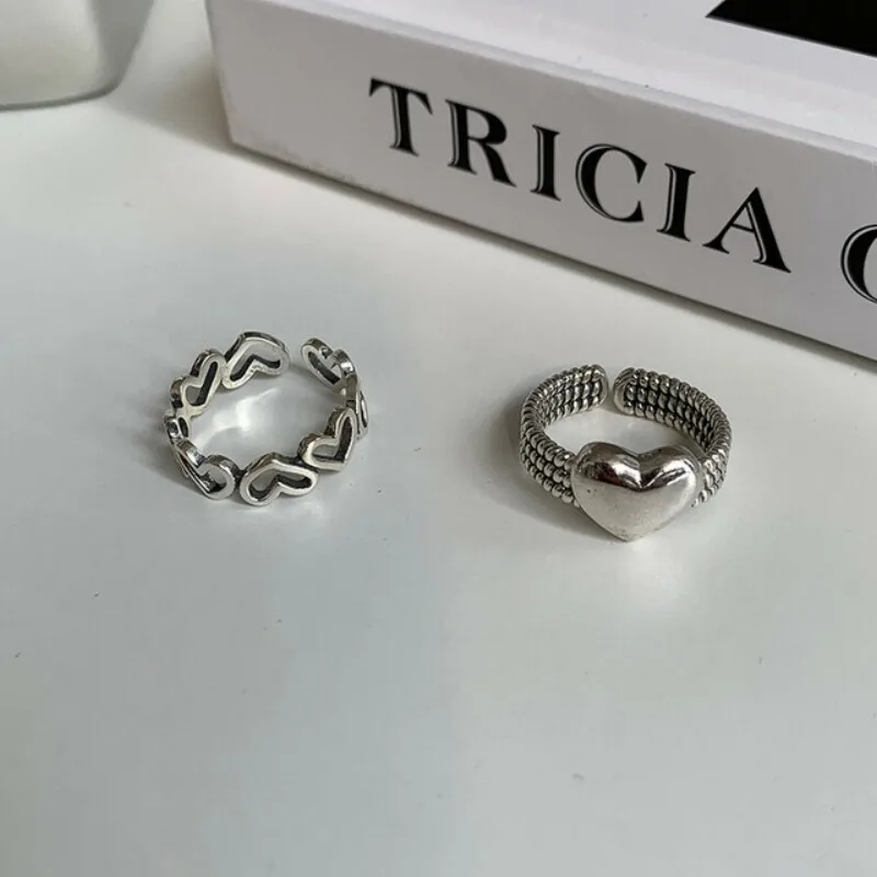 925 Sterling Silver LOVE Heart Rings for Women Couples New Fashion Vintage Punk Hollow Geometric Party Jewelry Gifts