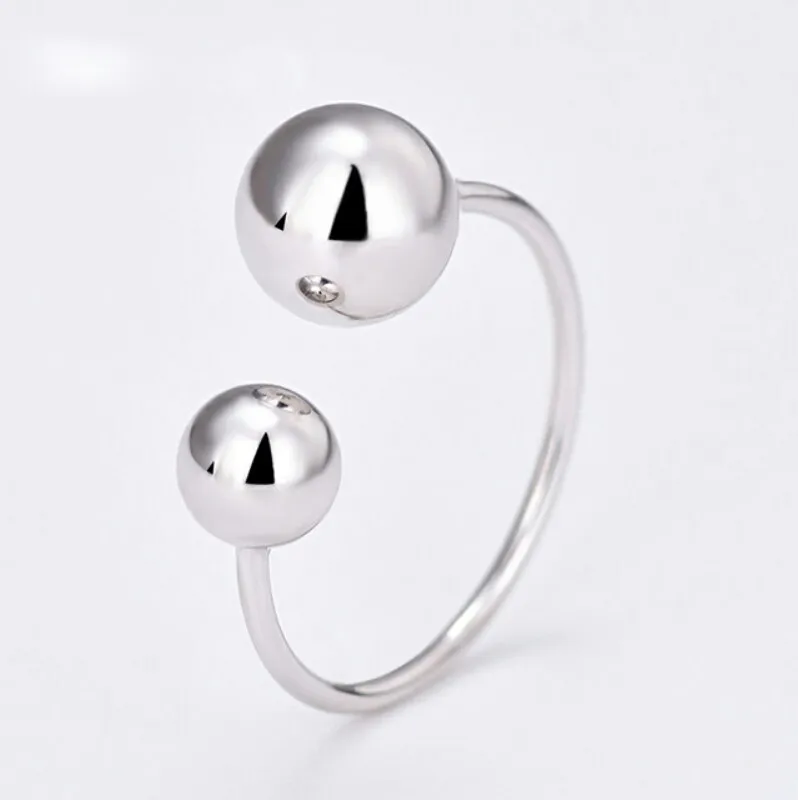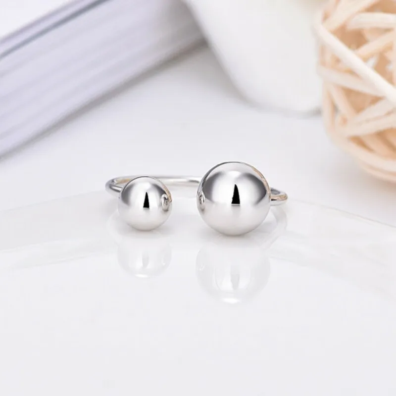 925 Sterling Silver Minimalist Two Beads Ball New Trendy Simple Geometric Open Rings for Women Fashion Vintage Jewelry
