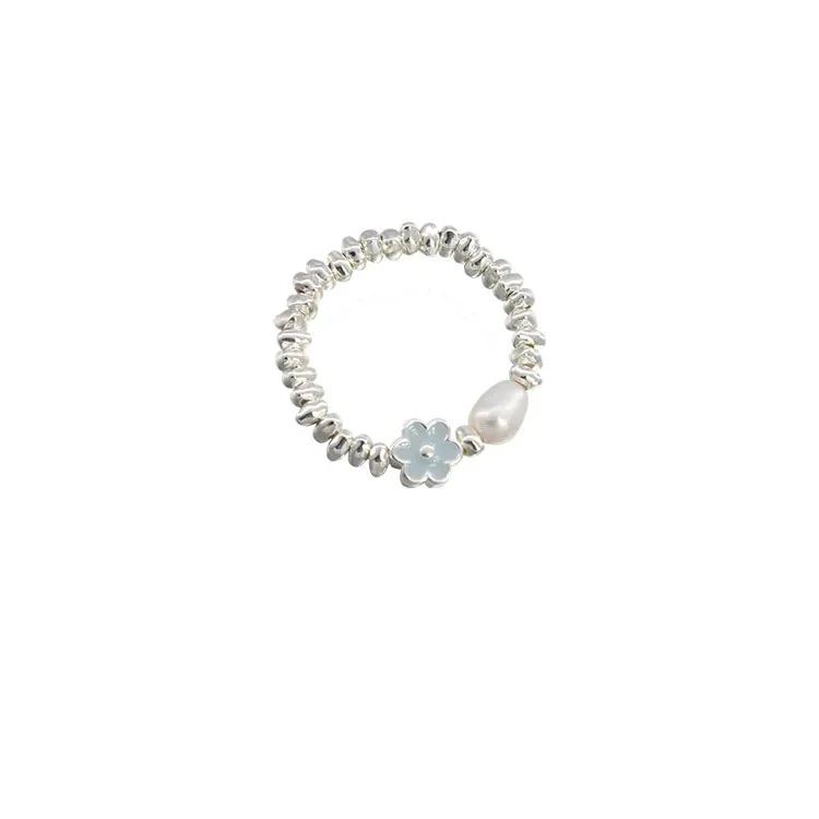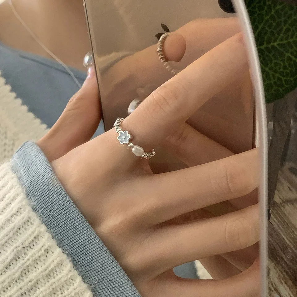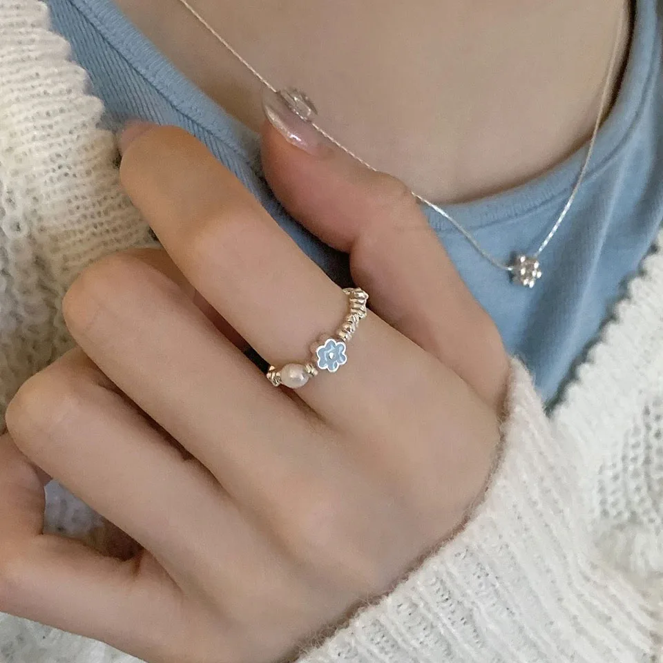 925 Sterling Silver Rings for Women Couple Minimalist Handmade Simple BLue Flower Ring Fine Jewelry Gift Prevent Allergy