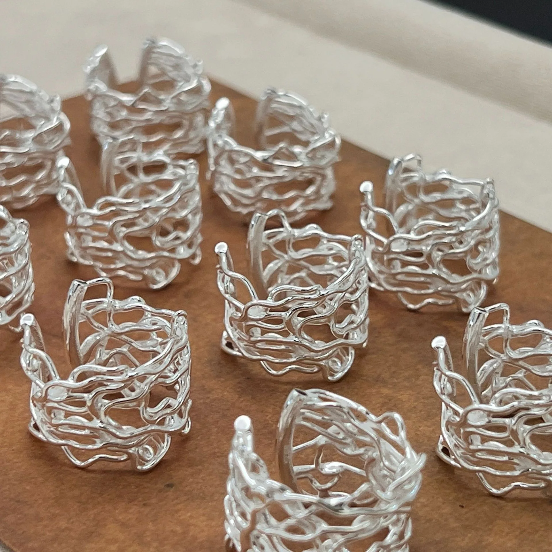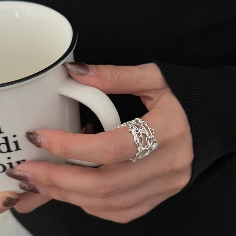 925 Sterling Silver Rings for Women Couple Minimalist Handmade Simple Interline Web Shape Ring Fine Jewelry Gift Prevent Allergy