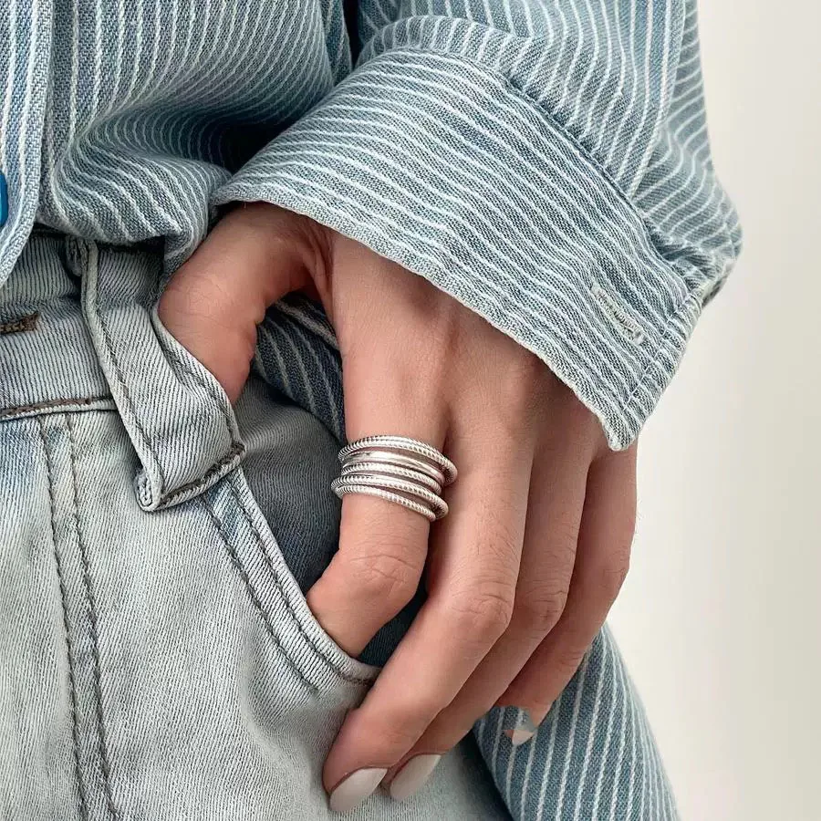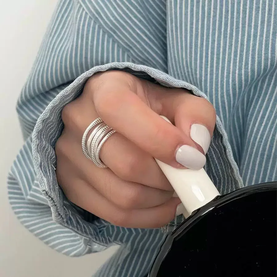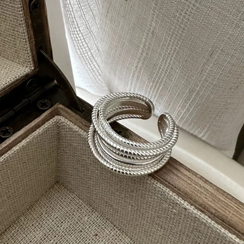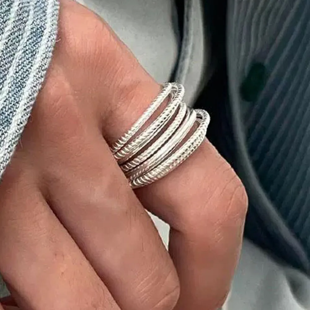 925 Sterling Silver Rings for Women Couple Minimalist Handmade Simple Interware Lines Ring Party Jewelry Gift Prevent Allergy