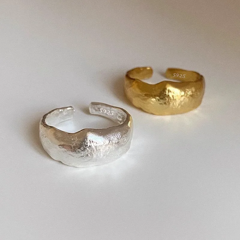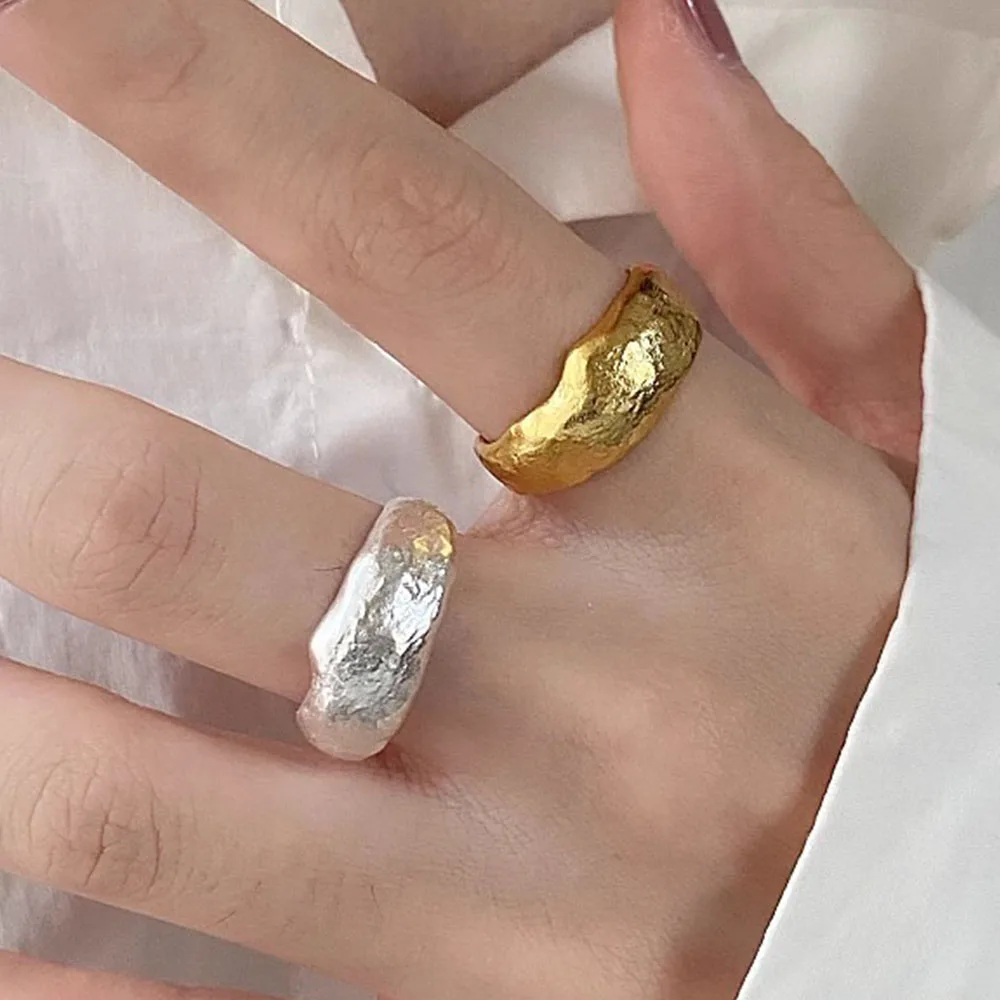 925 Sterling Silver Rings for Women Couple Minimalist Handmade Simple Shinning Gold Ring Party Jewelry Gift Prevent Allergy