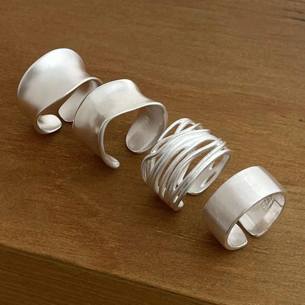 925 Sterling Silver Rings for Women Couple Minimalist Handmade Simple Smooth Sparkling Ring Set Party Gift Prevent Allergy