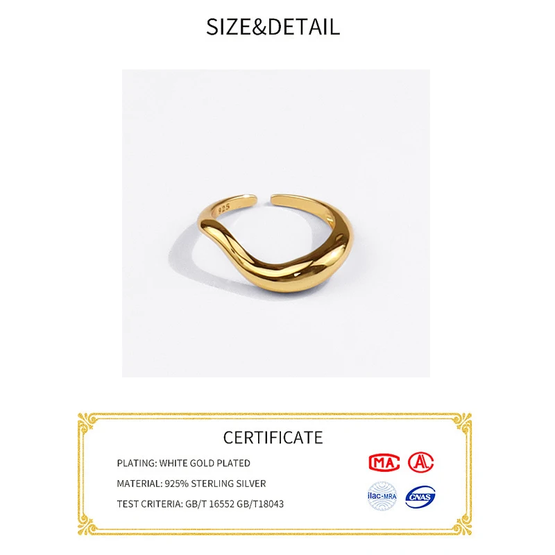 925 Sterling Silver Rings for Women Curve Vintage Wedding Trendy Jewelry Large Adjustable Antique Rings Anillos