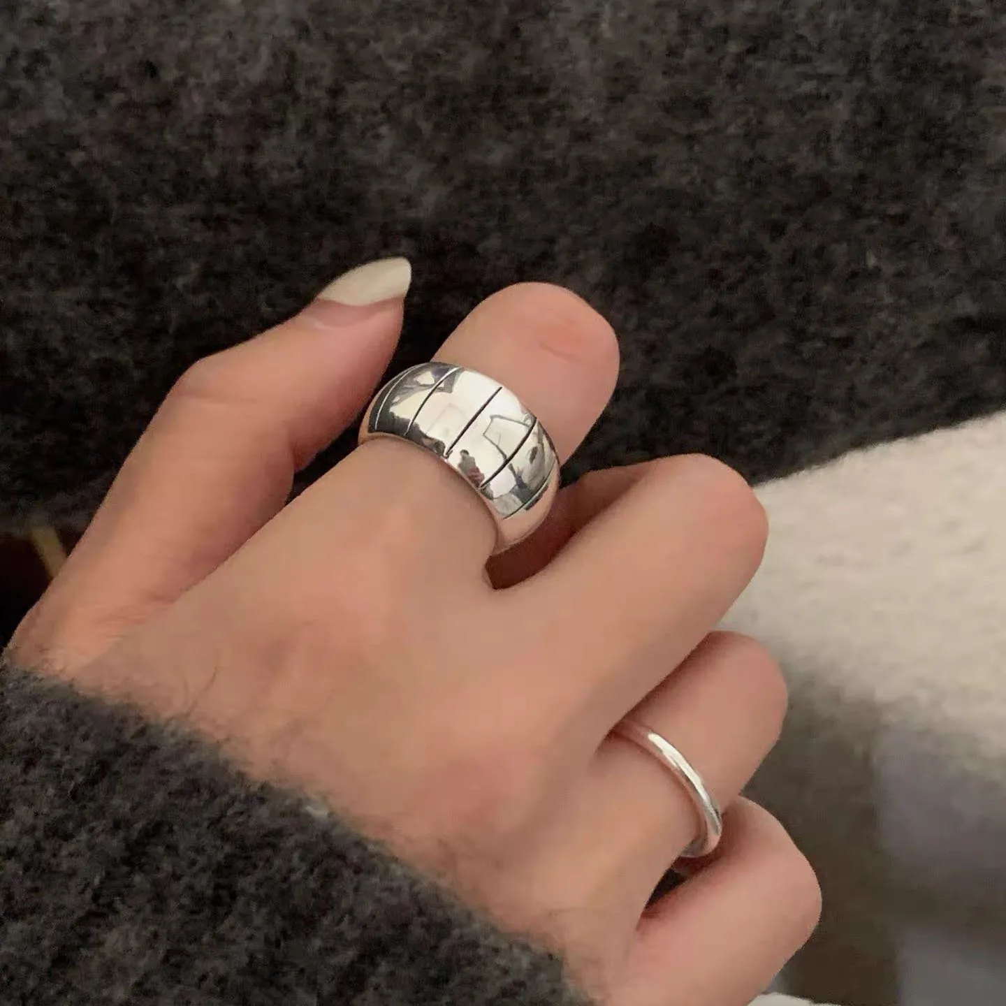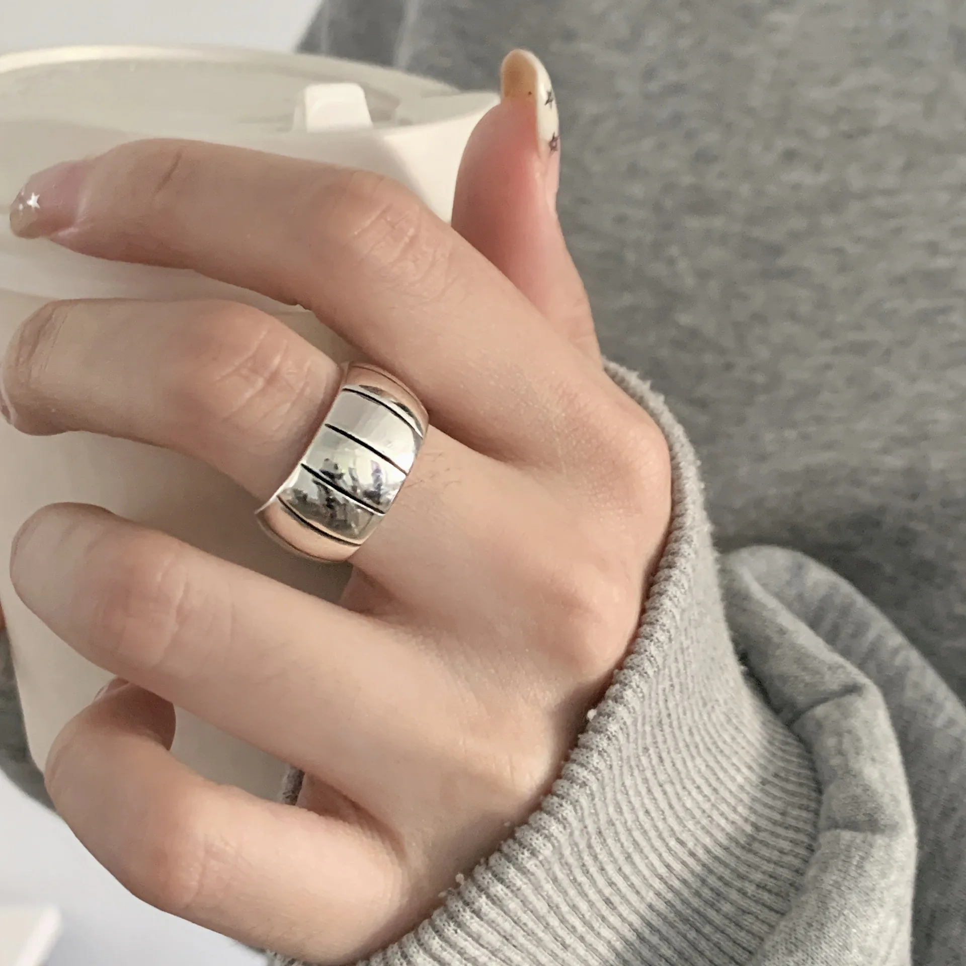 925 Sterling Silver Rings For Women Geometric Fine Jewelry Finger Adjustable Retro Strip Ring For Party Birthday Gift