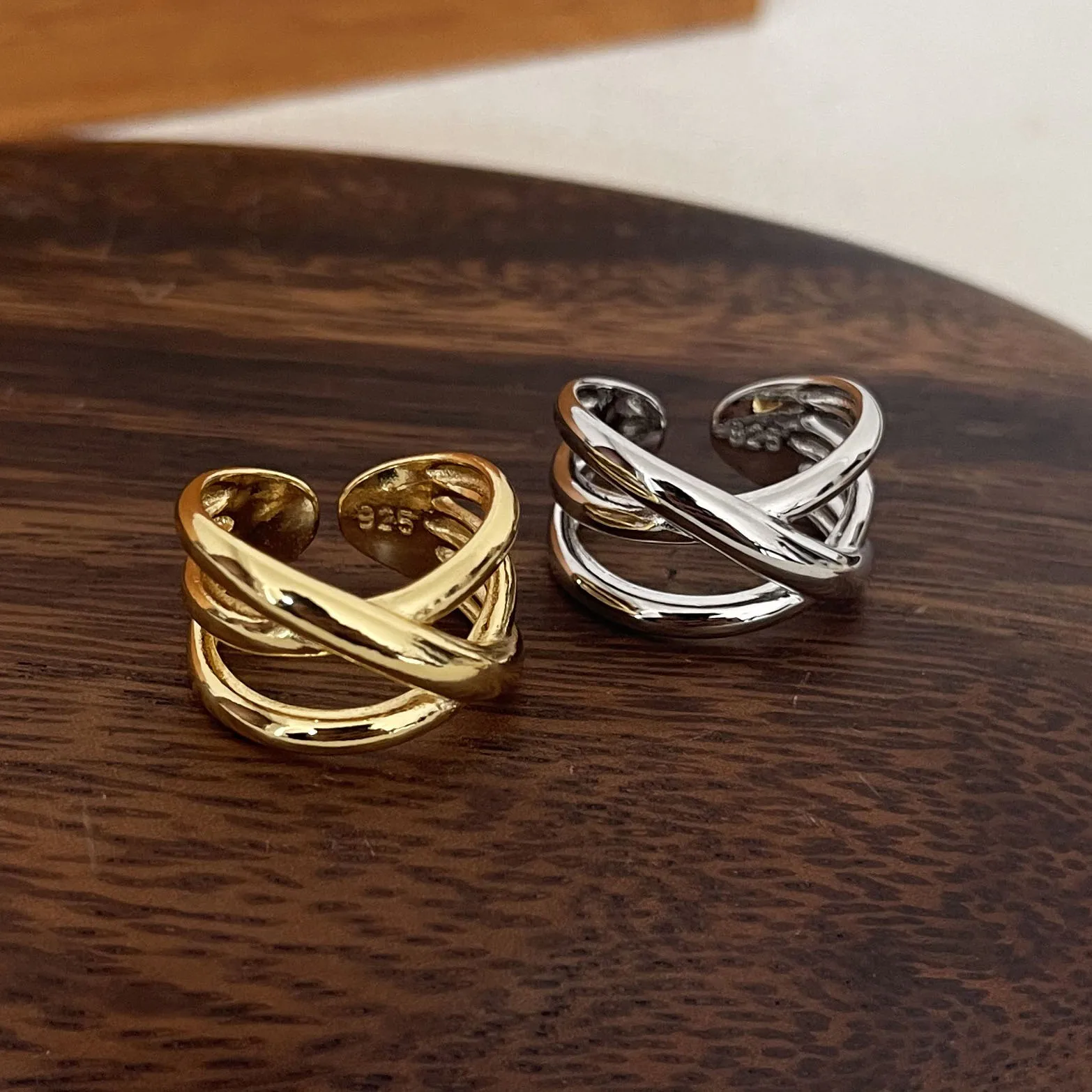 925 Sterling Silver Rings For Women Men Fine Jewelry Finger Adjustable Open Gold Cross Ring For Party Birthday Gift