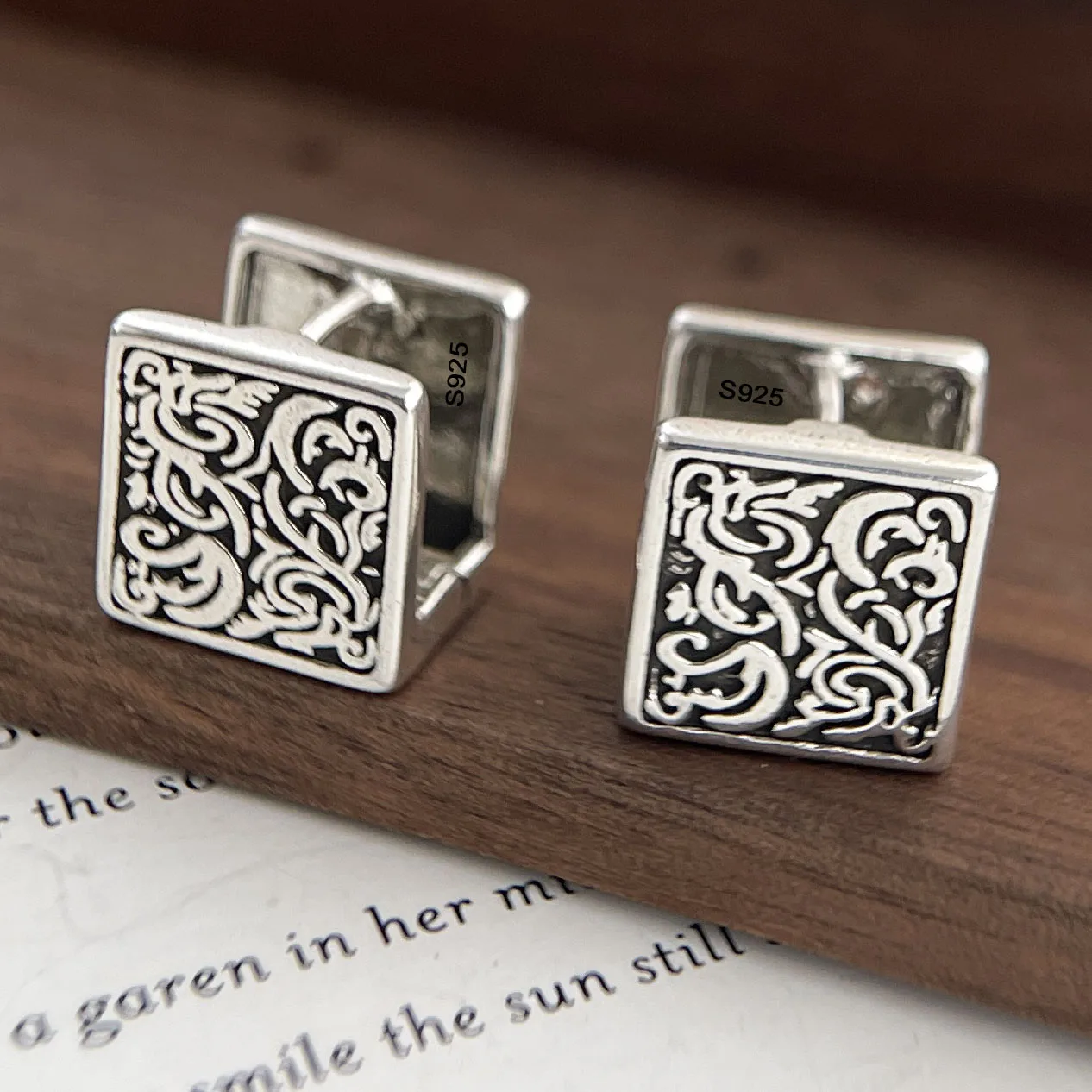 925 Sterling Silver Vintage Earrings For Women Simple Vintage Pattern Earring Jewelry Prevent Allergy Party Accessories Gift